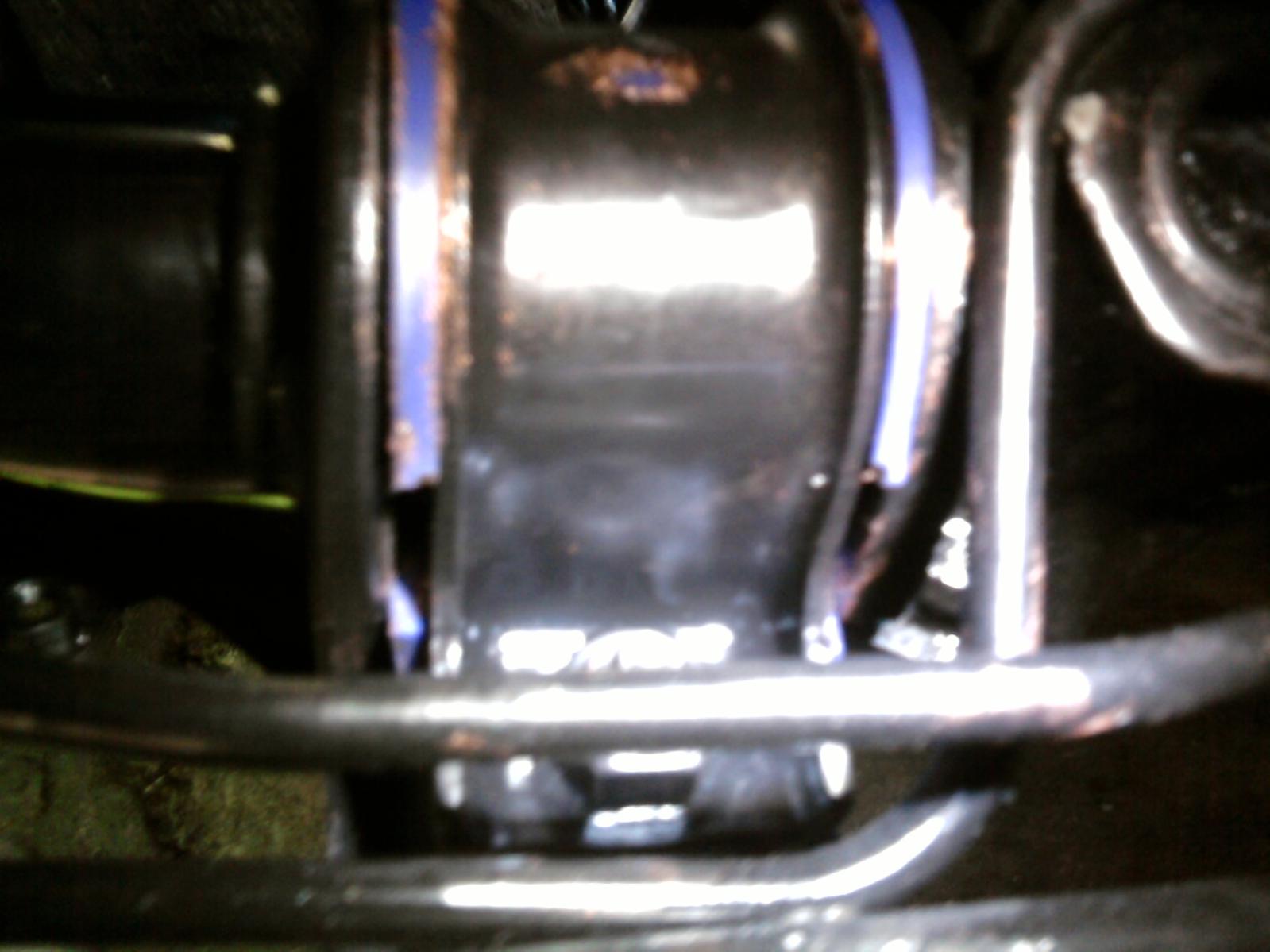 I gave it another shot today and got the mount bolted down but the bushing still was not seated correctly. The first two pictures are without it bolted down and the last is bolted down. I only tightened the mount down about halfway but the bushing still had a 1 inch gap in it.