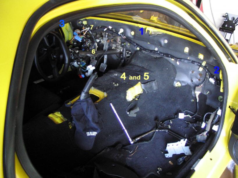 Stuff I removed already: gauge cluster/surround, radio/cd player, A/C controls, glove box, little side plastics to the right and left of feet, dead pedal.