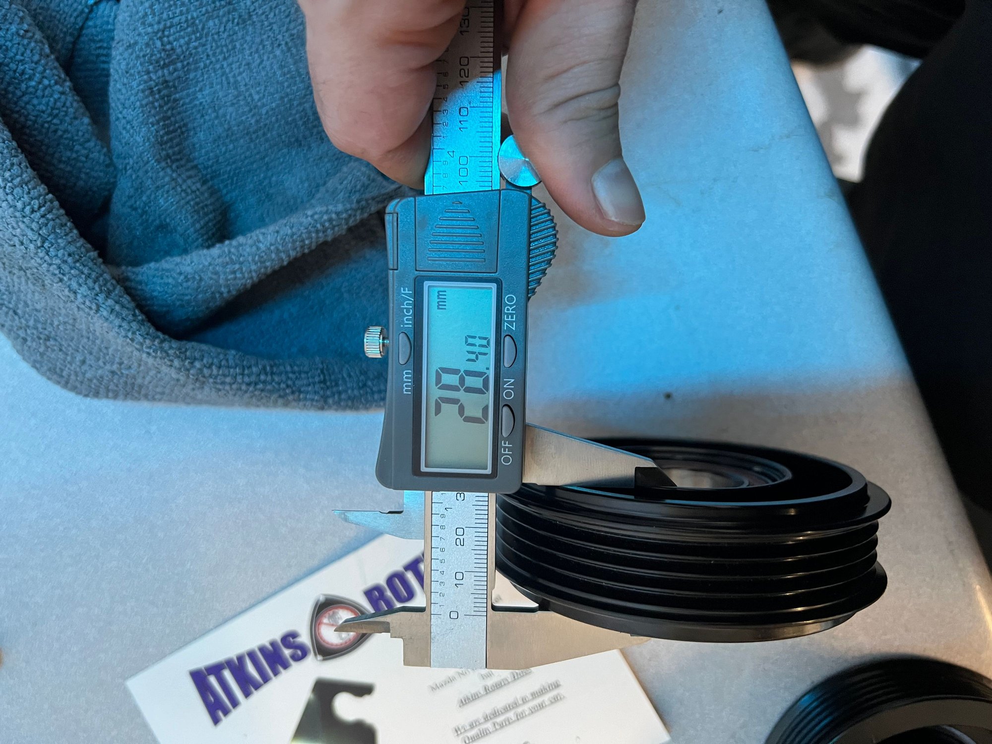Here are some additional details about the installation. It was a straightforward process, thanks to the OP finding the perfect replacement pulley. As shown in the photos, the new pulley measurements are incredibly close to the original, making it a perfect fit. My only concern was the Chinese bearing mentioned earlier. If you're considering this modification, I recommend ordering the Chinese pulley without the bearing installed, as it makes replacing it with a higher-quality option, like the NSK bearing I used, much easier.
