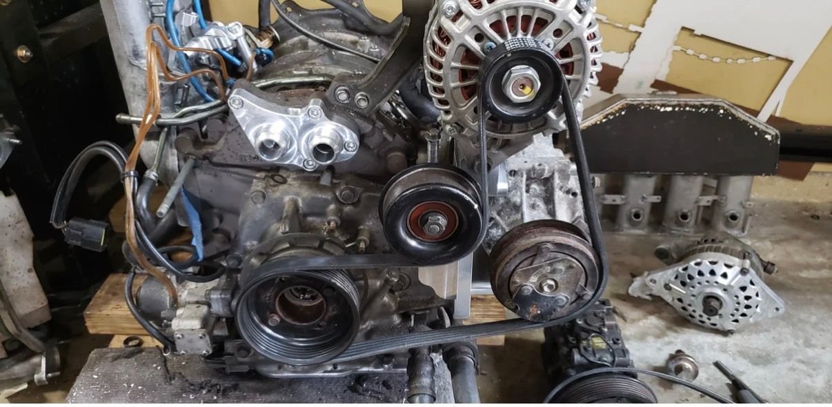 I found this DENSO compressor that comes with a 6-rib belt. A perfect alternative to the 4-rib RX8 compressor, alleviating the need to swap clutch pulleys.