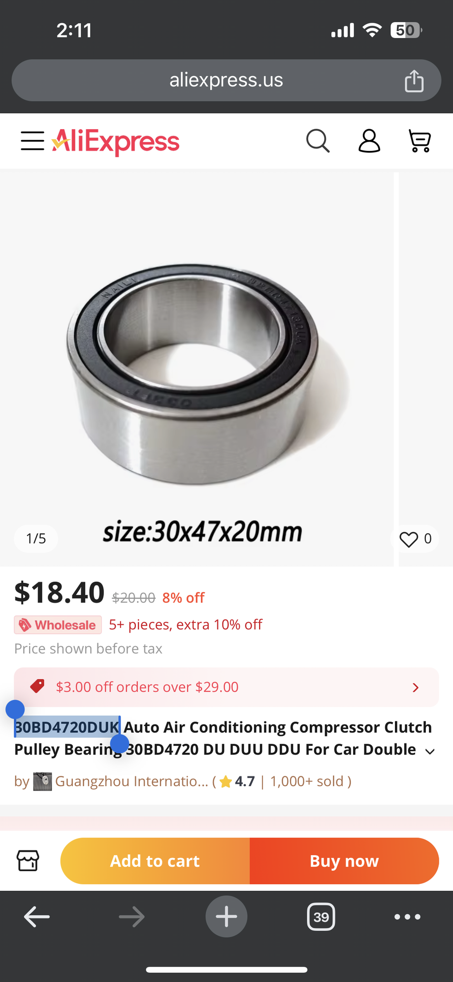 Had to order two of these pulleys. They stamp the bearing around where the pulley meets the edge, so you could use a Dremel to cut away the material and press the bearing out, but I'm lazy, so I ordered a new one without a bearing installed. The bearings they use are low quality.. I did some research on them. I’m not taking any chances with them failing after 10,000 miles. For anyone reading, try to get NSK or a brand made in Japan, the US, or Sweden. As of this post, sizes of 30x47x20mm are scarce. I had to source one off eBay since places like VXB Bearings are out of stock and mentioned that NSK no longer makes that size. Other suppliers may be phasing out this size too, so good luck with your search.