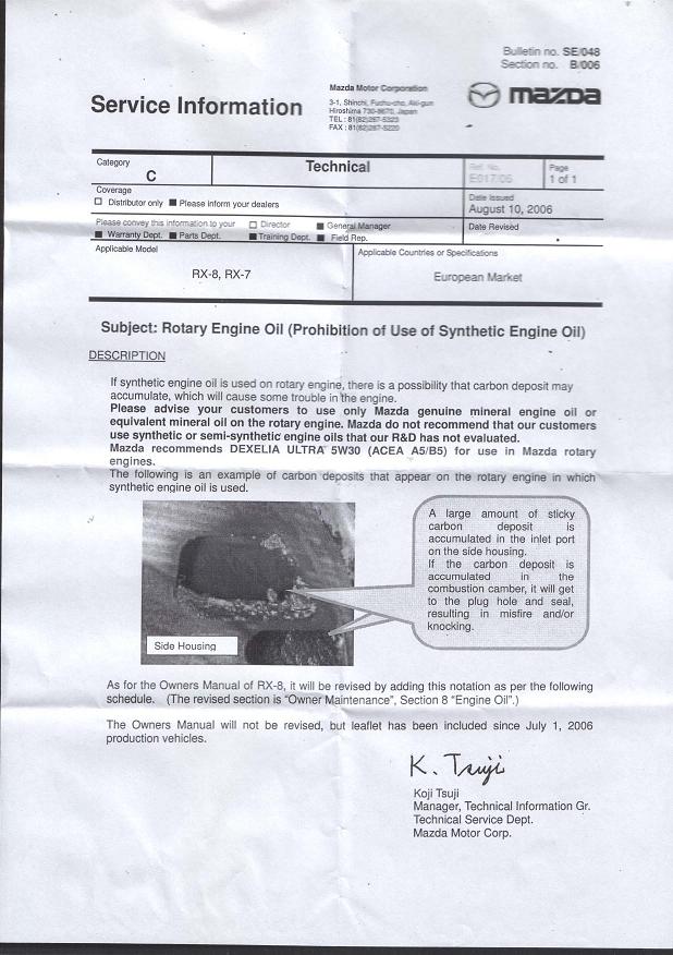think a big problem is the dealers.. (i work at one) unfortunately the dealers dont' wanna get dino oil just for rx8's. i bet the main problem is the fact that so many ppl wanan throw synth or synth blend oils in there and are ******* the engines up. even at my dealer i've requested to order a few cases of dino oil... and they say "use the store oil, it's cheaper (no name brand crap oil) and less headache. " and he was a mnao regional rep.... so i can imagine what the other dealers use or say. it sucks. but as always american mazda dealers ******* suck. **** i'm the only tech willing to actually work and fix rx8 problems instead of throwing parts at em... sad really. but i did notice they use alot less oil then the rew engine... all the msp13b's that i've seen with consisten oil changes are about a quart low after 3-4k miles when it's time for the next oil change..... always thought that was strange... but if i remember correctly mazda just put out a new PCM (ecu) Internal Bulletin to reprogram all rx8's with the new maps wich include increase in OMP Injection... i say they put a 1-2 qrt. canister you drop 2 stroke in and **** it. would solve soo.... many problems... ha. i'll keep an eye out about it.