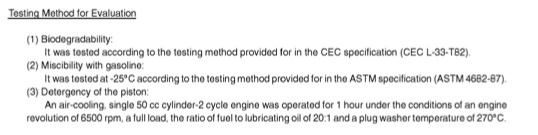 Now lets look at how the famous Idemitsu 2 cycle oil for the rotary was tested when their patient was placed..