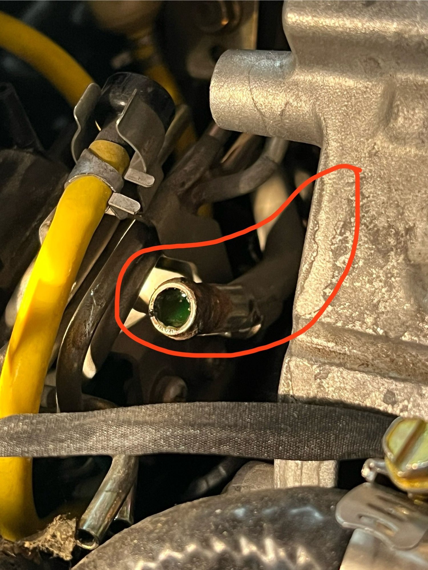 Actually, after more digging, I think this is the missing hose…? This pipe is behind the alternator. It’s full of coolant:
