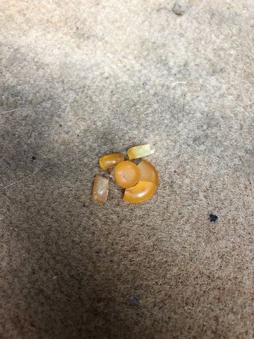 Figured I'd add pictures to this very old post as this just happened to me - battery died spontaneously and new debris in the driver's footwell led me here. I should have known from the clutch one years ago and suggest for everyone to proactively check both of these plastic buttons before you get stuck with a dead battery or not being able to start it because it can't read that the clutch is depressed. I'm not sure I'd trust glue as the last poster but I just zip-tied a washer there (pulled it tight at the 12 o'clock position of the hole and washer).