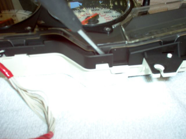 Now carefully pry the tabs holding the covers on the gauges...