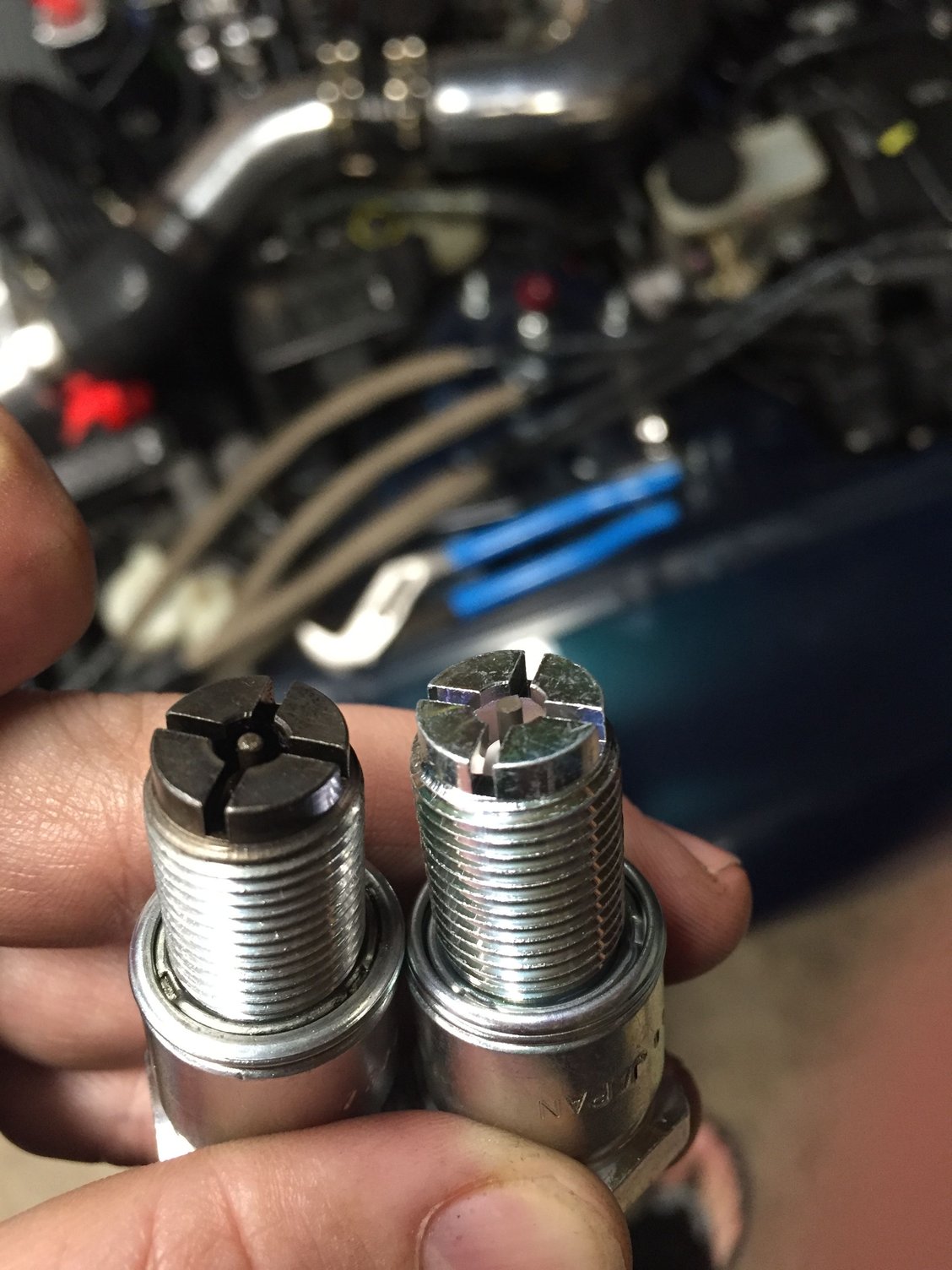 I have been running this setup for the initial breakin of my rebuild on the sakebomb kit this is only after 500 miles. These are leading plugs 9 heat range just for reference I've included a fresh plug. I'm running rich until I can tune it but these coils eat plugs.