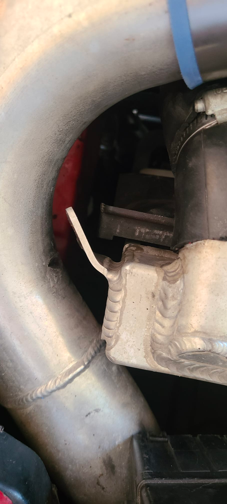 2. Noticed the radiator bracket was rubbing and cutting a groove in my piping, so easy fix to bend that Before After