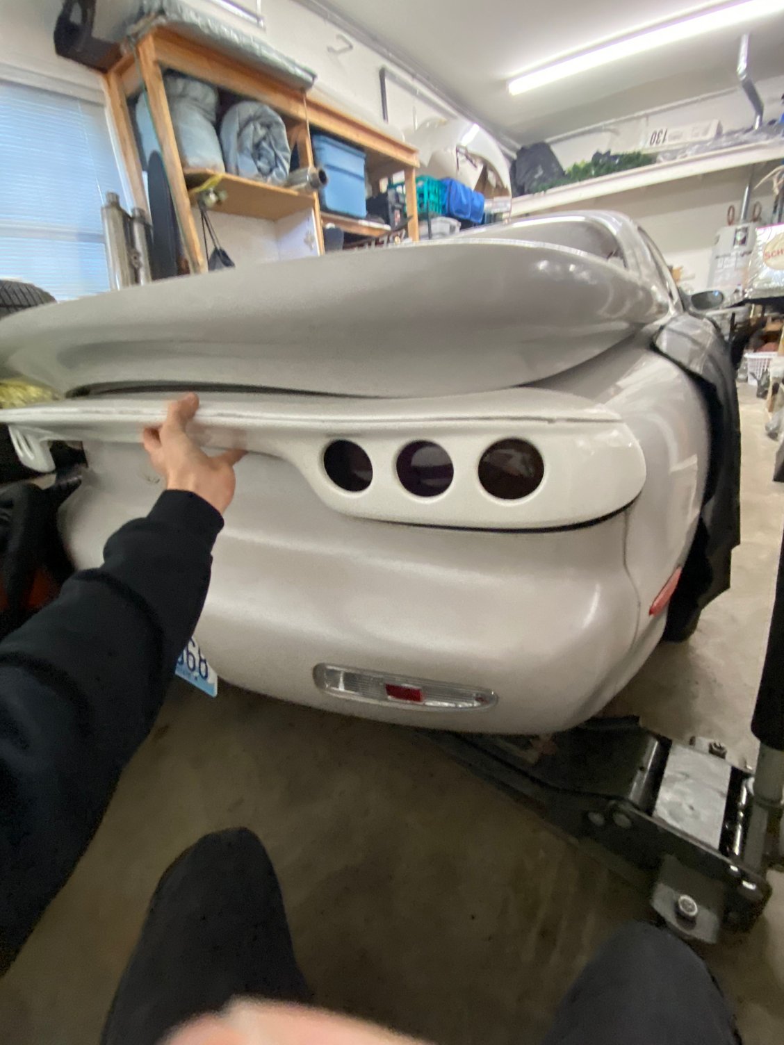I want to eventually respray the whole car, so I used the bay (and taillight cover) as an opportunity to test out some wesco paint that I hoped to match to this old RE time attack vehicle which is like a greenish-white. I think it came out close enough and still cool in its own right that I will paint the whole car this color eventually.