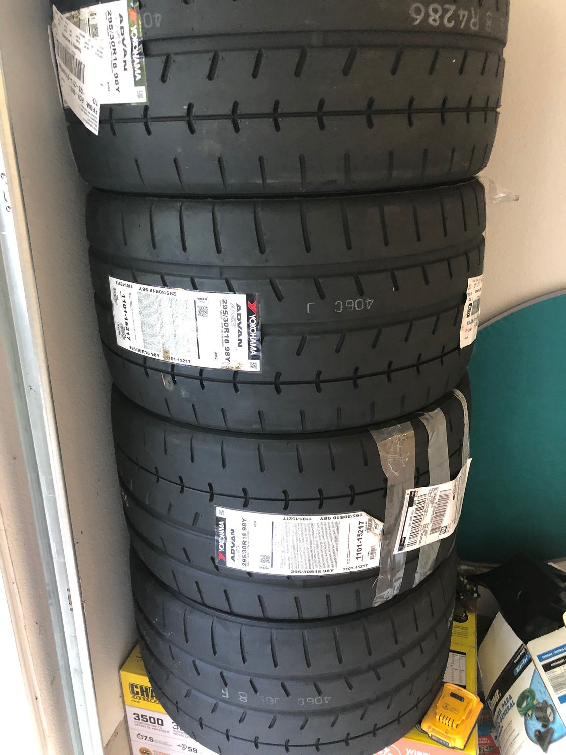 Autocross tires. 295/30/18 square Had Ohlins on my evo and loved them. So FD is getting them. But they won’t go on tell after my first autocross. Want to autocross on the stock suspension first. That way I can see the change Autocross wheels. 18x11 +45offset. Going to take a little work to fit but should work.