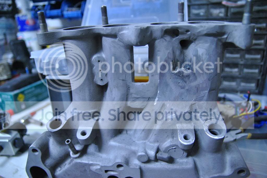JDM LIM. block off plates? we dont need no stinking block off plates! just cut them off lol... what is the rectangular opening by the gasket for? can i just weld it shut? (forgot to take a pic of the backside...) This first started off by cutting the egr?? off to make more room between the LIM and my DP so i can add a heat shield and basically got out of hand as my die grinder didnt stop cutting............. http://i426.photobucket.com/albums/p...n/DSC_0854.jpg cut the little slit in the UIM. i know its been done before, but i can only recall phil having this too. definitely looks cooler than i thought.. http://i426.photobucket.com/albums/p...n/DSC_0855.jpg water pump housing... cut off all the fittings and shaved the piece down. also cut off the mounting point for the air pump (cant remember who i saw this from) http://i426.photobucket.com/albums/p...n/DSC_0857.jpg http://i426.photobucket.com/albums/p...n/DSC_0858.jpg no more pink turbo??? http://i426.photobucket.com/albums/p...n/DSC_0856.jpg |