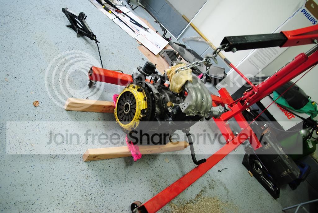 UGh what a bloody PITA day. im getting rusty as hell. barely remember how to wrench on a damn 7. today it took me over an HOUR to detach the damn motor. and by detach i mean ONLY detach motor from trans. UGH. first checked the clutch ring thingy. check. bolts off, check. pull. no go wtf? tried that for about 45 minutes then realized the clutch thing needs to be PUSHED in not pulled out. what and idiot.