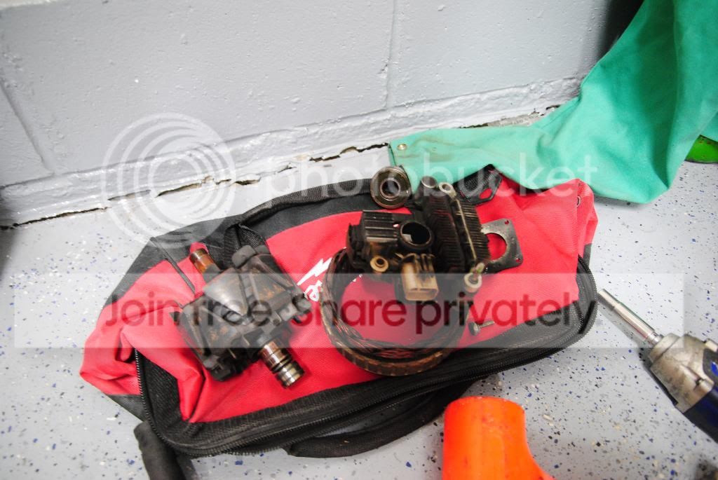 POS alternator. the stupid Philips head screws holding the bearing in stripped out. tried dremeling out a deeper groove for a flat head and that failed. bolt extractor broke an failed. i ended up drilling out the 2 screws that stripped out.