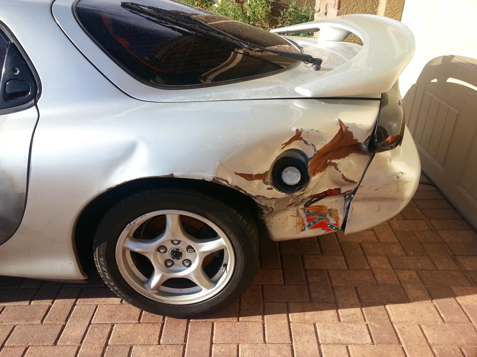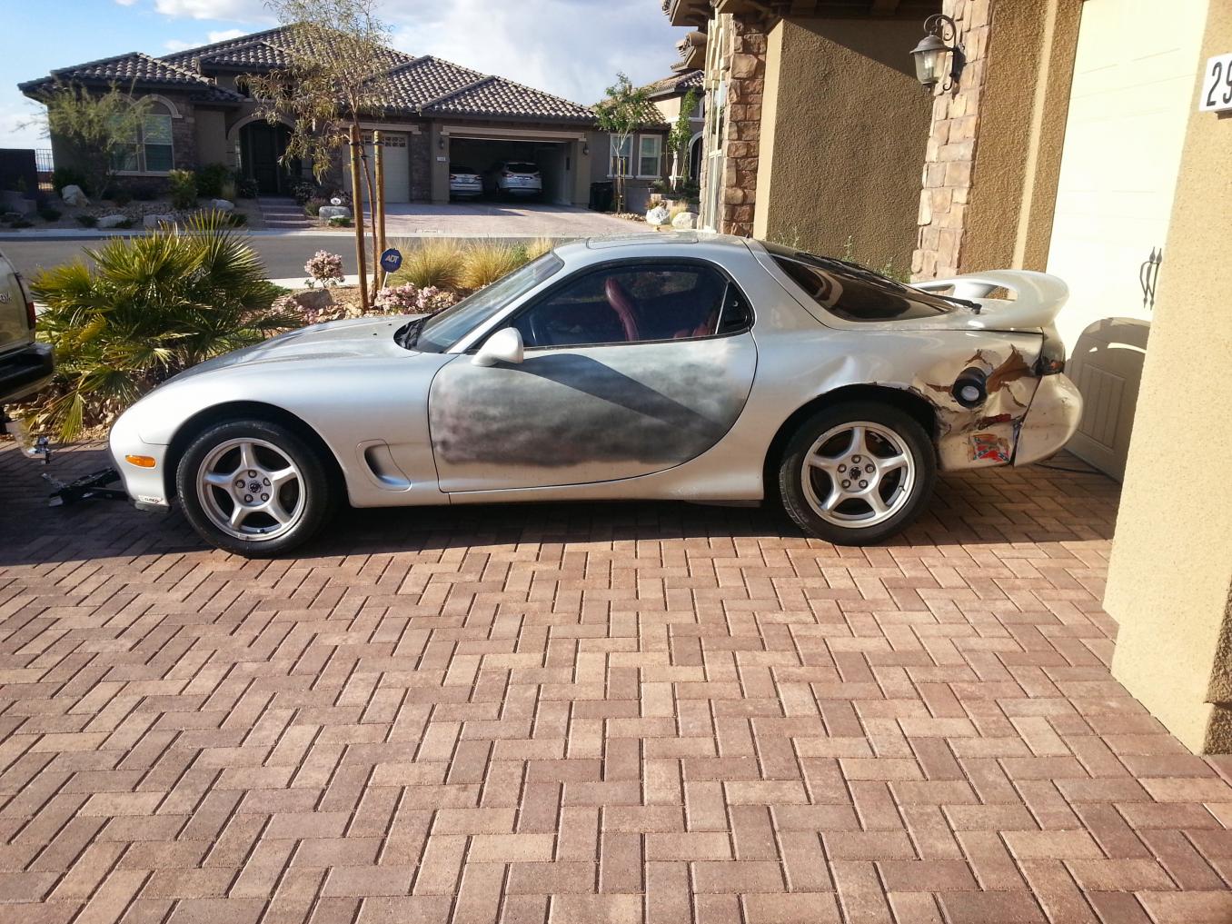 Rotary Evolution is on this site and from all the reviews, a no bullshit and excellent builder. I say that now you have the money, either go wide fenders on the rear and chop what you can or just fix it. I wouldn't junk it just because I have a thing for silver rx7. Btw, a Greddy fmic isn't bad at all!