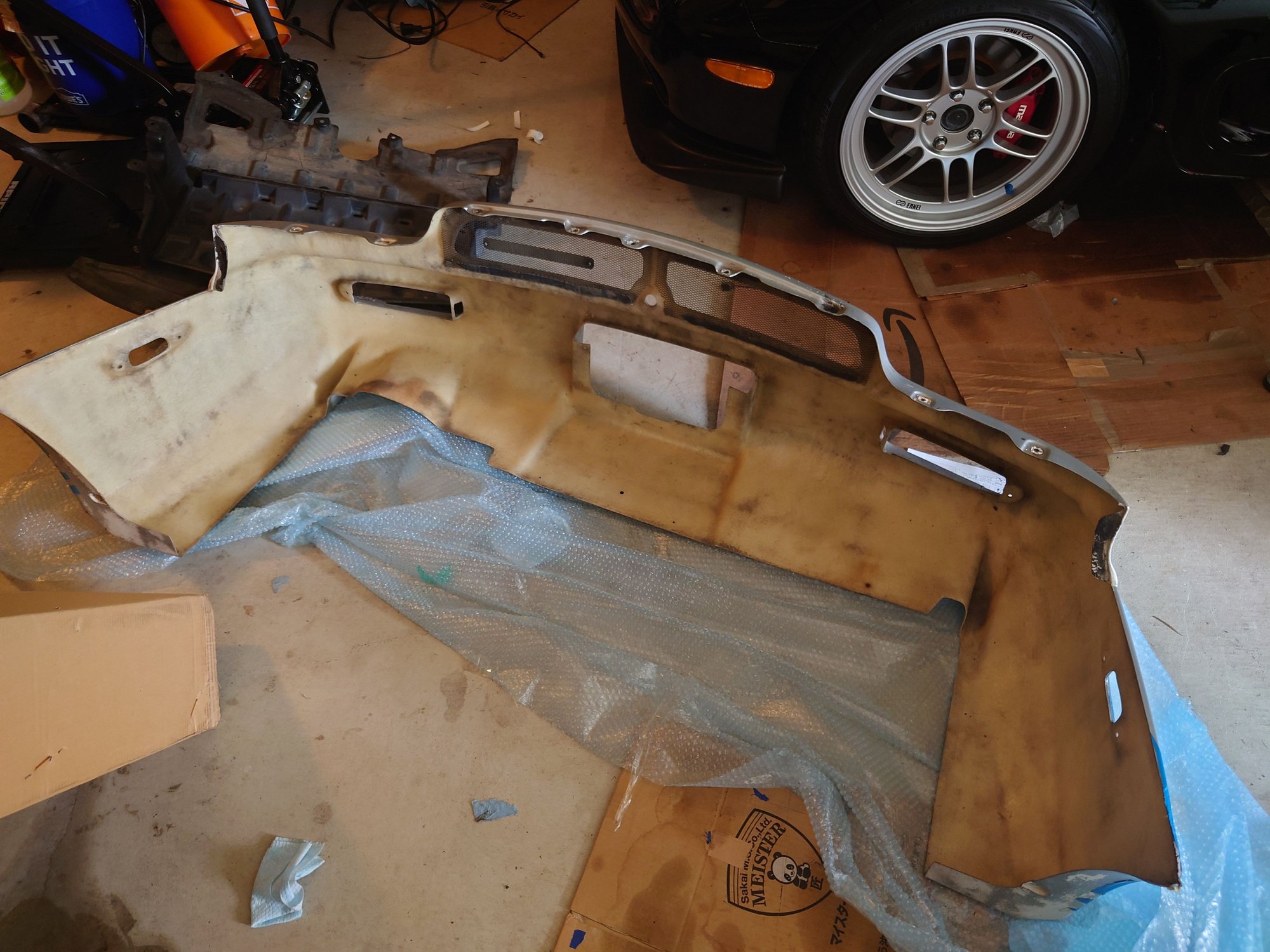 The engine bay will be repainted, so there's no reason in my mind not to replace some of the really shabby old things in there. Chief among them, the crusty old overflow and washer tanks. Here you can see the new items in the center. Holy crap what a difference. https://cimg9.ibsrv.net/gimg/www.rx7...7cfba9d5d7.jpg Since I'll also have a vented hood, I've also decided to grab a number of JP3 goodies. Greddy vmount duct, relay mount, grounds. I've also picked up the RX-8 A/C kit to retrofit because R12 is becoming an increasing pain in the butt to get ahold of. https://cimg3.ibsrv.net/gimg/www.rx7...587d2f1b01.jpg https://cimg2.ibsrv.net/gimg/www.rx7...5d19446d9b.jpg Middle of the month, I go to check on the progress of the car at the body shop. Find out if there's anything they need from me along the way. https://cimg1.ibsrv.net/gimg/www.rx7...c1c52bfa8a.jpg Much more in the way of flattening going on. Wheels are removed in order to do the fender rolling I'll need for the new wheel/tire setup https://cimg4.ibsrv.net/gimg/www.rx7...df47530895.jpg https://cimg5.ibsrv.net/gimg/www.rx7...caacca0942.jpg I made a special point to remove the gas struts I had installed so they wouldnt reinstall them on the carbon hood. Figured that struts gassed for the aluminum hood would cause a real headache attached to something so much lighter. https://cimg7.ibsrv.net/gimg/www.rx7...d7db505c59.jpg We need to discuss the imperfections in the hood. What will we do about them? Repair? Hide? Find out next time One of the things that did require attention was the rear bumper support brackets. On the car, they were completely eaten through. But, I did have spares from a parts car years ago. While they are still rusty, it wasnt nearly as bad. They still feel extremely solid, no hollow-ness to tapping through the whole rust area. So I'm gonna clean them up and use em. https://cimg7.ibsrv.net/gimg/www.rx7...a52811f4e7.jpg Despite its looks, it really has barely eaten into it. https://cimg8.ibsrv.net/gimg/www.rx7...ef07361f14.jpg So I decided to give this rust converter stuff I found at the local hardware store a try. Maybe it'll work wonders? Maybe it wont. I've had such crap luck with chemicals not doing all they're supposed to in the past, so I'm not expecting much. https://cimg3.ibsrv.net/gimg/www.rx7...bab75b2a6c.jpg https://cimg4.ibsrv.net/gimg/www.rx7...946efa7e89.jpg |