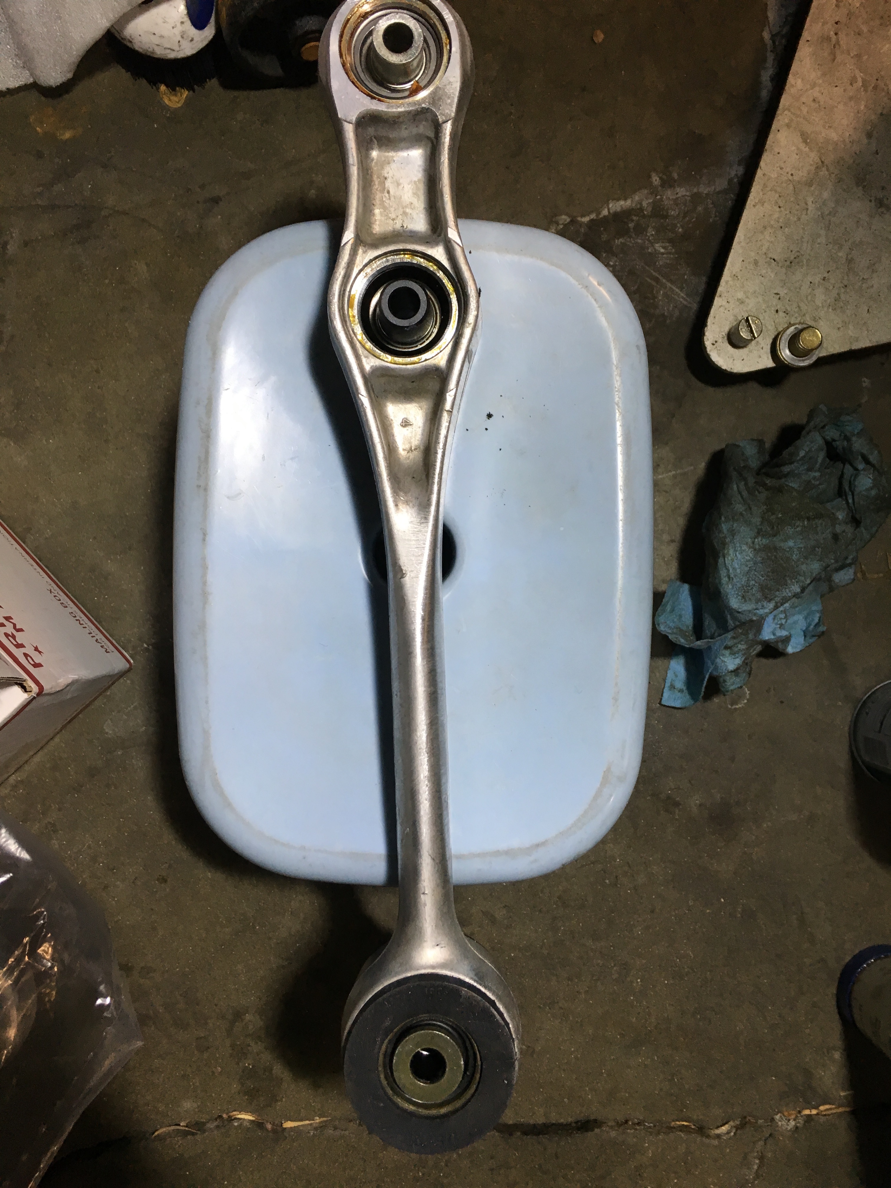 Thanks to J Auto for the fast shipment on my OEM dust boots and Powerflex bushings. My buddy cleaned up my lower arms after pressing in the new bushings. Rear uppers coming off this weekend, then the dreaded Diff bushings.