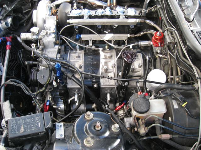 The engine is rebuilt and has be re-installed in the car. In addition, the downpipe and manifold has been refabiricated for better flow. The downpipe is now a straight shot through so no places for the exhaust to get hung up. The wastegate flange has been reworked to take advantage of two runners instead of one.