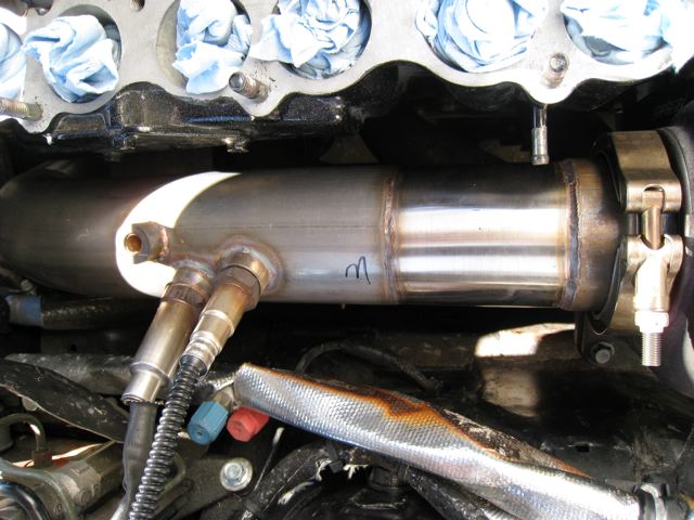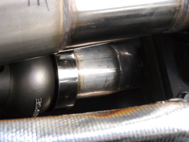 Here are some shots of the new downpipe. To refresh your memory, the old setup had significant airflow issues: