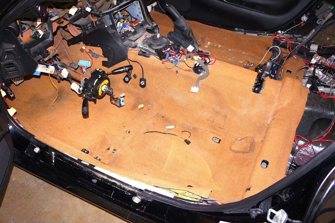 So, spent yesterday taking out the dash, removing the tan carpet, and starting to reinstall the new black carpet. I ordered the new carpet from Auto Interior and Upholstery--Leather Seat Covers and Molded Carpets and got the "mass backing" option on it. This adds a think rubberized coating to the back of the carpet. Makes it more difficult to install, but will be worth it for the extra sound and heat insulation. Total cost of carpet shipped to me: $211.19.