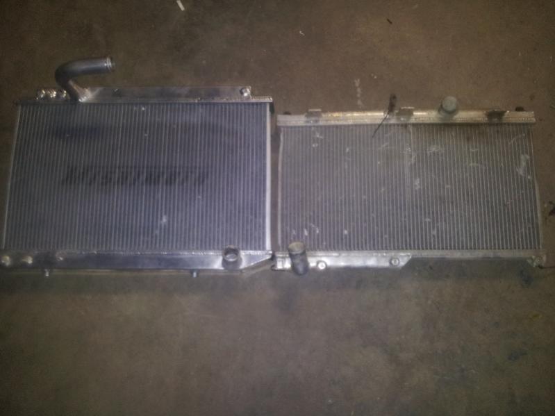 Sounds like a nice big setup. Mine is just a single pass 3 row. I thought about modifying it for dual pass but read it creates more water flow resistance and hurts power. Little things like that effect an NA hp and fuel economy more so than something boosted. Anyways, I can't wait to see your completed V mount setup when it's finished.