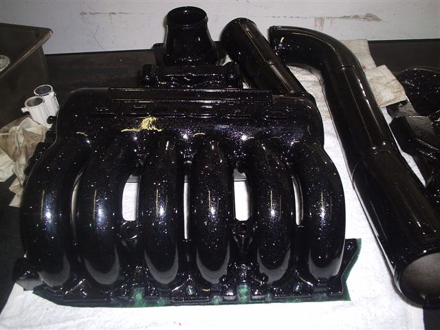 A few powder coating shots. I went with a black metallic that looks pretty black until it's under light (see second pic). Then the flakes in the powder coating kind of pop out at you.