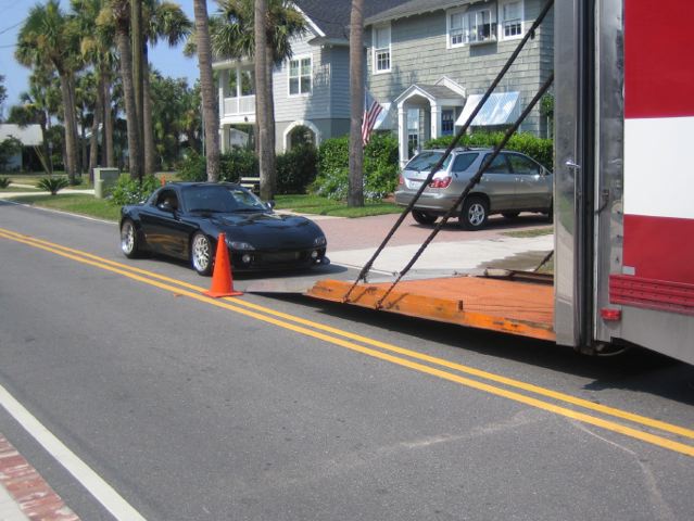 Thanks for the advice. As my car has travelled the US looking for a good mechanic to complete the work I've already used several transporters. The two I highly recommend are Emerald Coast Carriers (850.393.7724) and Bullsye Auto Transport (877.216.6683). Both are utterly fantastic and have come through for me several times, especially when the car was in CA. Emerald Coast Carriers is a small operation that is based out of FL. They too have a completely enclosed carrier (very important to me) and a flat ramp for the car. See my attached pic of the car being loaded to ship to CA. If I knew then what I know now... The second company, Bullseye, is basically a broker for other companies. Their dispatcher, Carla, has the best customer service of anyone I have ever met. She arranged to pick up my car with just a few hours notice, which was important to me given I could only be assured Chris would at his shop for short periods of time.