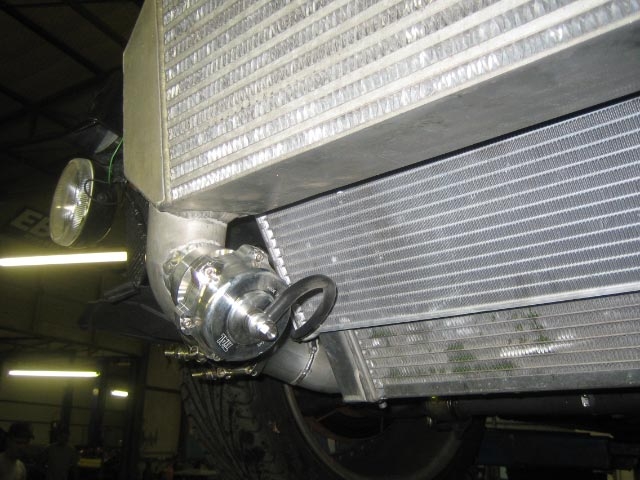 Actually the wastgate is also causing a problem. It's currently venting directly on the heater lines. They're wrapped but can't take the punishment in the long-term. The solution is to move the AC lines and wrap them in heat insulation. The downpipe is also getting wrapped and Gotham is going to come up with a solution for internally venting the wastgate.
