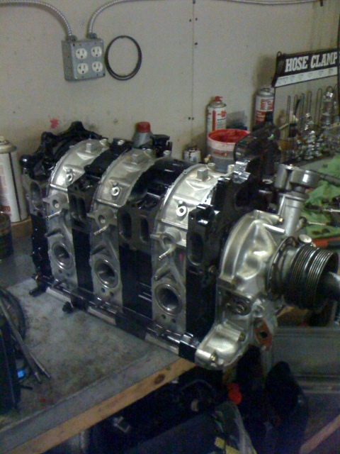 Okay, so I got ripped the last time I said, "it's alive". So this time it's close to breathing. The long block is now assembled and will be dropped in today. A few iPhone pics: