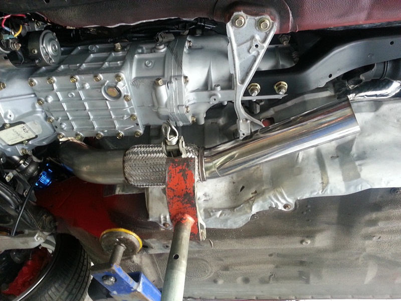 Some pics from today. We started making the exhaust system. I was fed up with the exhaust shop continuously postponing my appointment for weeks and weeks so instead of having a custom muffler with dual tips made I decided to keep my HKS Hi Power (aka police magnet). The system is like this:
