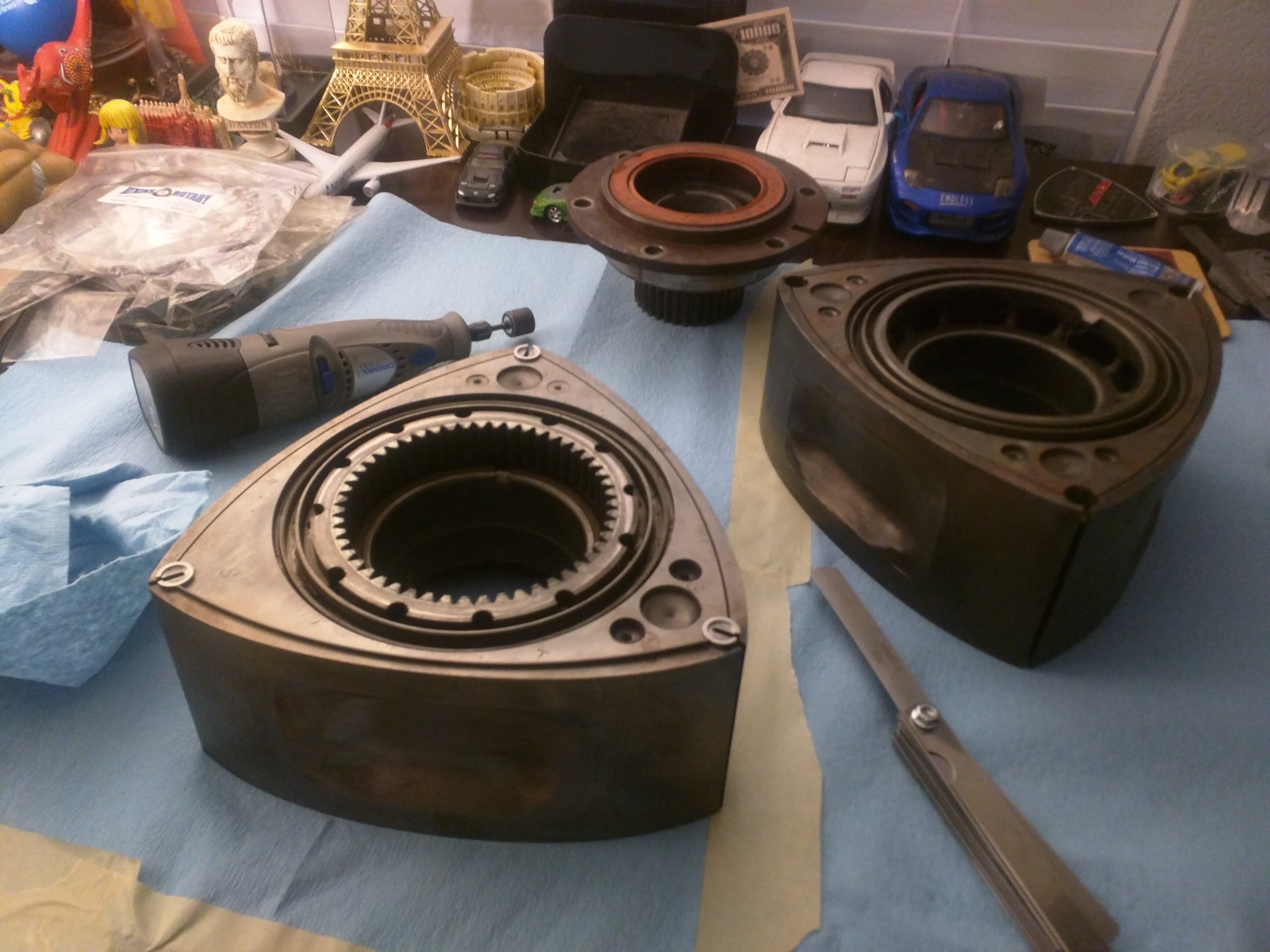 Alright, so back on track! Got a replacement front iron in the mail that needed a lot of clean up, but I've got it ported. I've got it on the engine stand. I've got one rotor with all the side seals shaved down .003 clearance and finally figured out which oring goes to the damn dowels/housings. Tomorrow I'll work on actually putting more together. I'm having to look everything up as I go, but I'm really enjoying the bonding time.