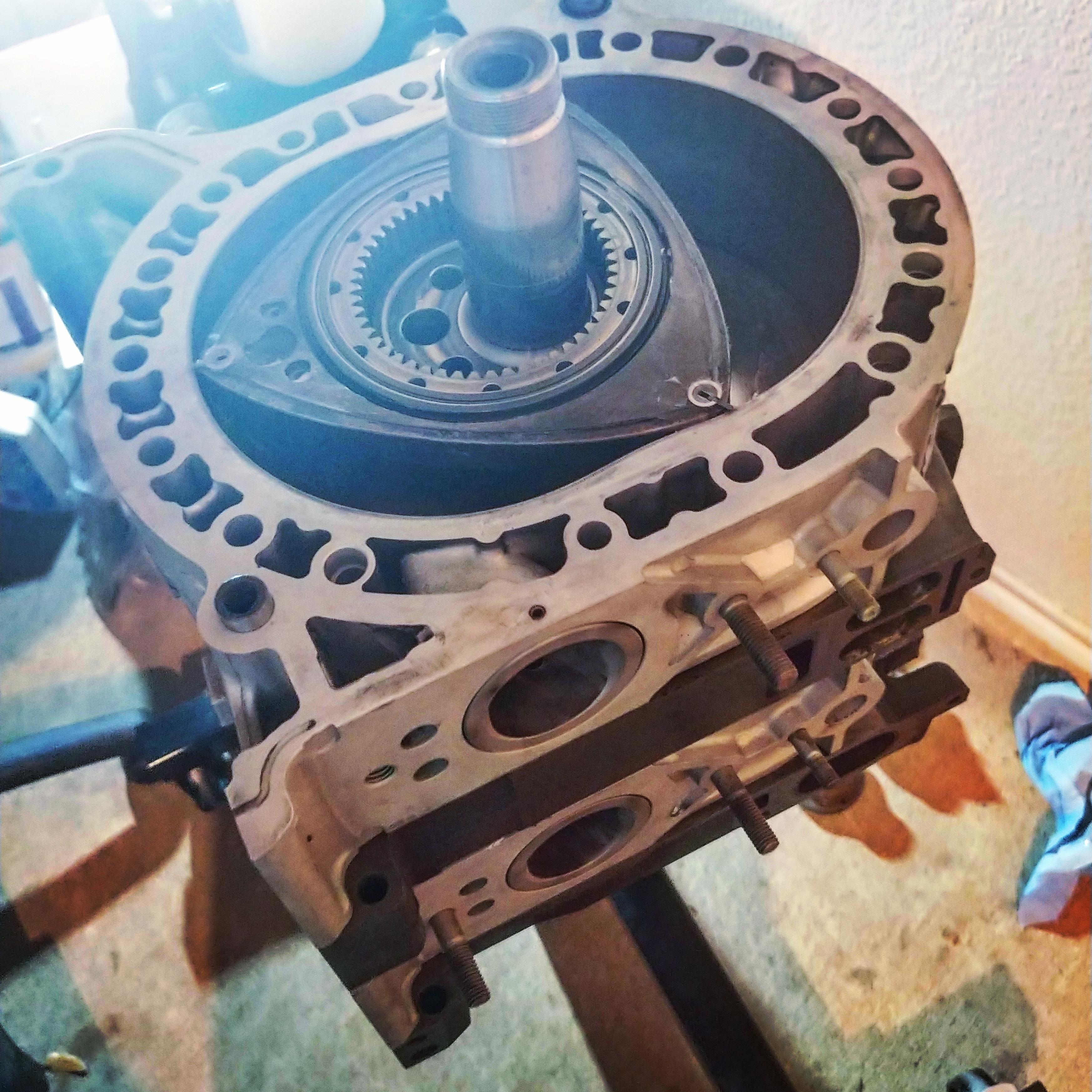 Ohhhhhkay, so I had a few minor setbacks when I gathered everything to start putting the motor together. I found out that my rotors were a 2mm and a 3mm, so I found a local guy and bought another 2mm for $225. After finding out that everyone under the sun has an opinion on Apex seals, I stuck with E&J, got those in. Then I realized my solid corner seals and Apex seal springs were all 3mm, so I bought them in 2mm. I bought a Dremmel and Goopy's rotor repair kit and sanded the carbon off the rotors. I bought a carbide Dremmel bit and a Mazdatrix streetport template but haven't done that yet. I traded away my 2nd trans for a motor mount and downpipe.