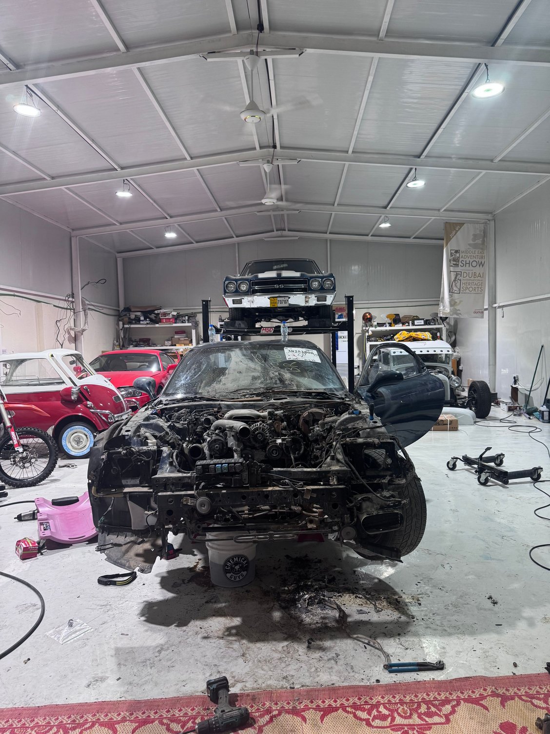 About the car: I found it here in the UAE — a guy had imported it from the US. Unfortunately, it had an engine bay fire at some point. I tried contacting the first owner to learn more about what happened, but haven’t gotten a response yet.