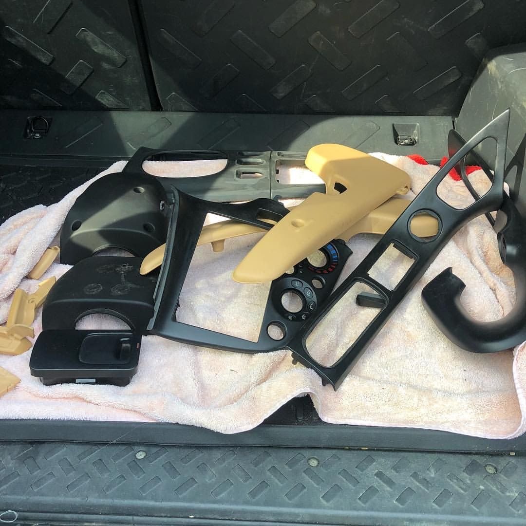 After seeing how nasty the stock plastic was and attempting to strip, sand and paint myself I decided to send it off to be refinished. At the same time I removed the oem seats and drove around to upholstery shops trying to find a decent price to get them redone. After getting 3 quotes and all of them being $1,000+ I decided to start researching aftermarket options.
