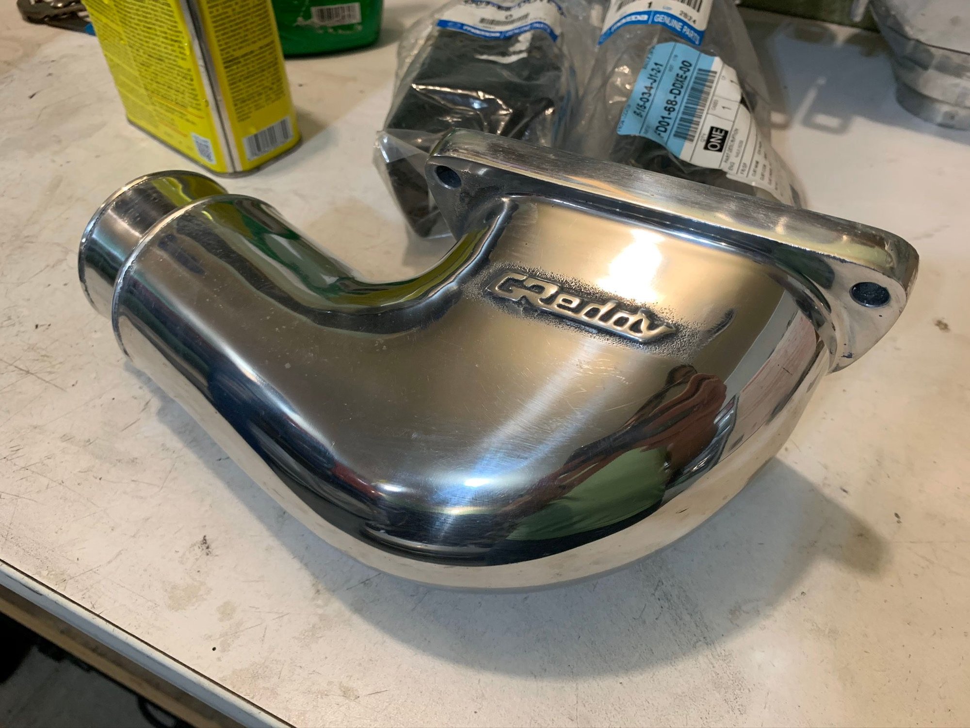 After exploring powder coat, cerakote and just trying to paint myself (previous owner had painted everything black), we decided to go for the oem look of bead blasting the oem upper/lower IM, GReddy elbow and alternator. It turned out really clean looking!