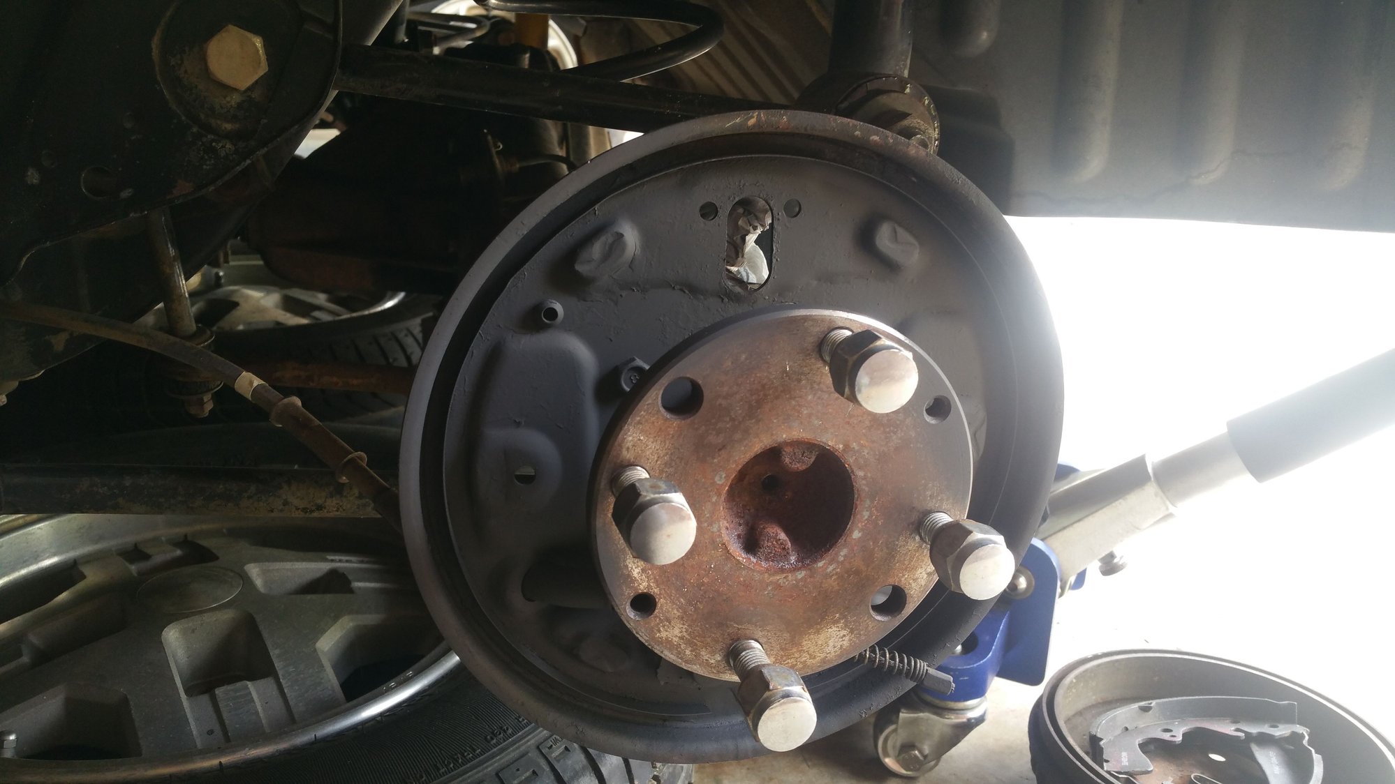 I tried to move it and realized that the rear drums were seized. This officially started the build. I rebuilt the drums, wheel cylinders, etc. and inspected the rear end. All the bushings and leaks were as expected of a 30+ year old car.