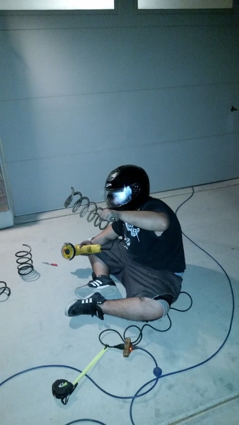 okay so now that the rear is sorted I had to figure out the front... being a broke kid in highschool..... yup, you guessed it. those front springs got hacked away luckily with the help of a friend