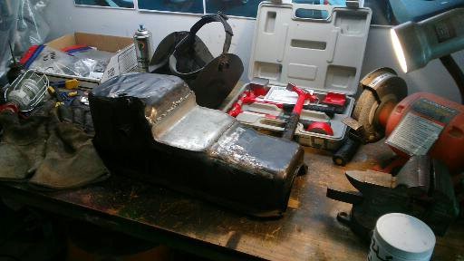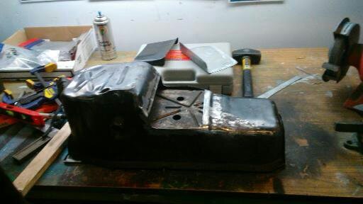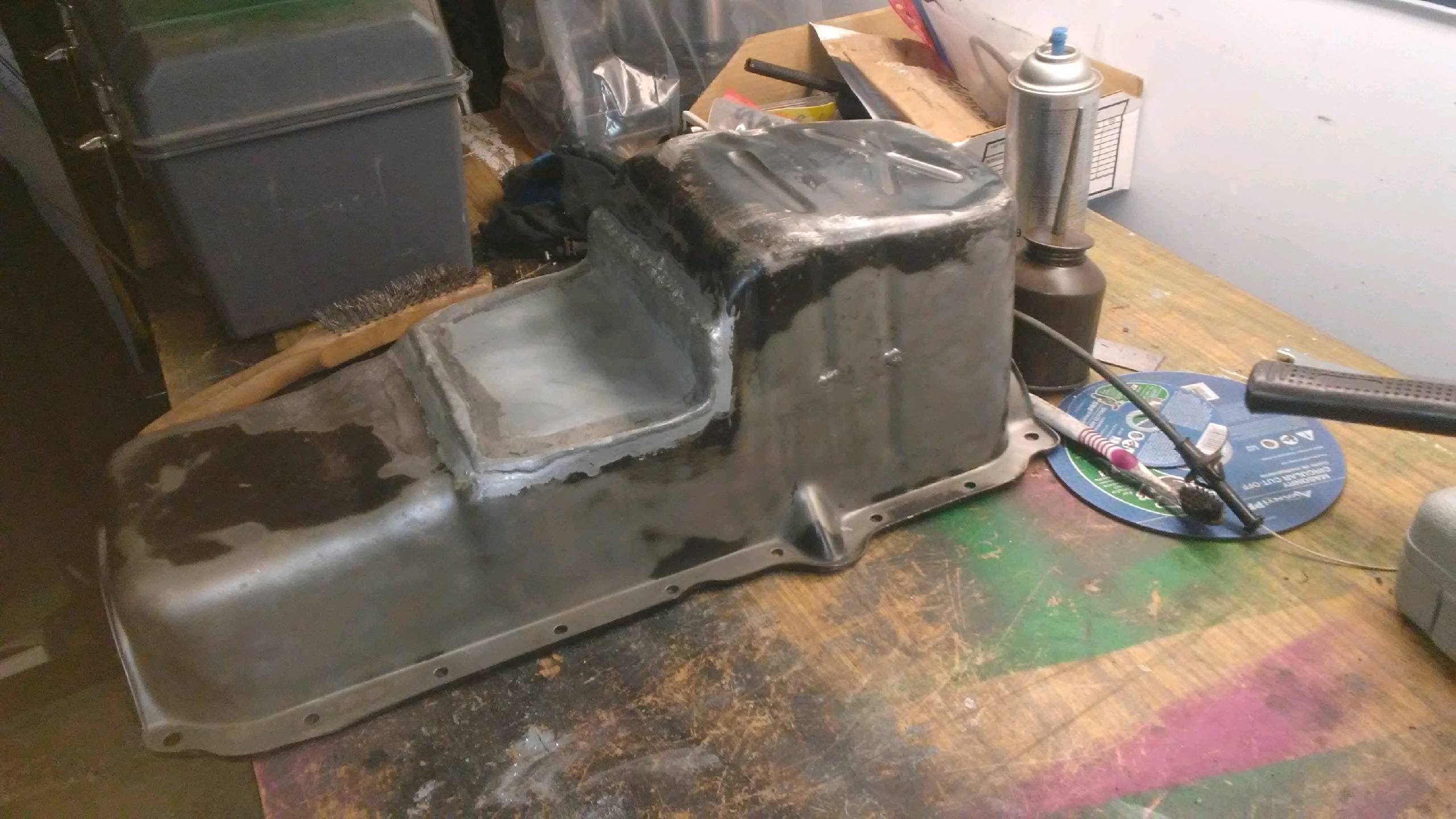 Freeskier: I've been following your build on several forums! I have thought about doing this swap for quite a while, but the video of yours starting/running is what pushed me over the edge and got me buying parts. I pretty much copied your modified oil pan, which saved me a couple hundred bucks too....soooo thanks!! I also wanted to use the 12a "low oil level" sensor since the chevy sensor functions opposite and I thought it might save the soul of this beast! Then I sand blasted the pan and painted it, but I can't find the painted picture at the moment.