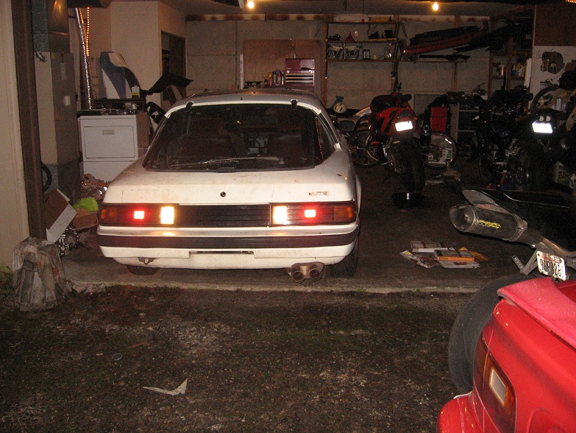 Luckily, I had a 1983 RX7 with a motor with blown apex seals, so before insurance came and totaled my car out, I did a quick bolt-in motor swap so I could keep my good engine (only 109k on the ticker). I left that shell with the bolted-in motor (which I ended up oiling pretty regularly) sitting in front of my parents house for the next 3 years, much to my moms dismay. I was scared of the wiring (which as far as I'm concerned, is magic blue smoke trapped in the wires, and you know you did something wrong when it starts escaping), and was so busy with full-time school, the Formula SAE team, and a job, I spent most of that time trying to decide whether I wanted to turn the car into a rally car, or just scrap it.