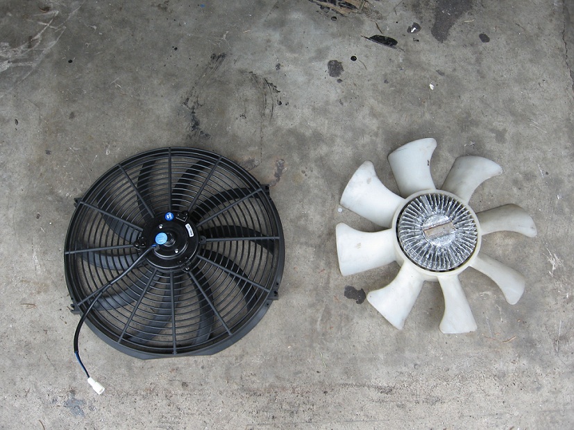 I also installed an electric fan and am still dialing in to the running temperature that I want. The fan is big enough with this radiator that I've got some overhang, so when I do end up getting a front-mount oil cooler, I'll be able to pull air through both radiator and oil cooler. I'm excited about that.