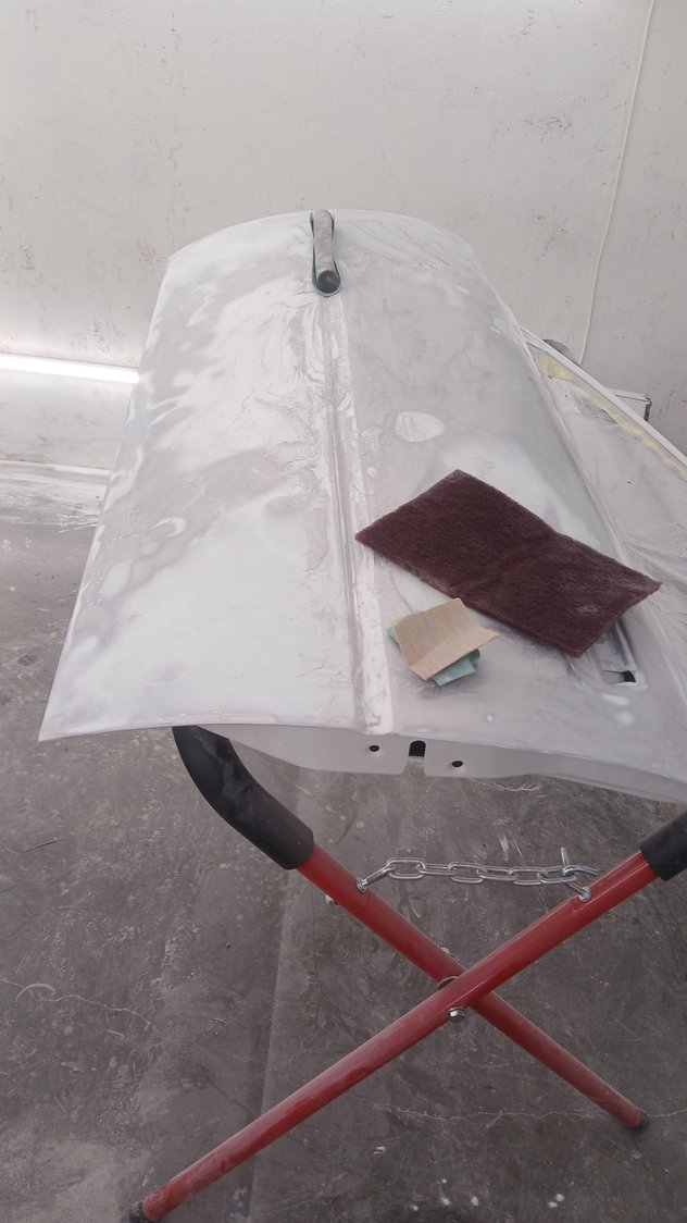 Ive been a bit lazy on posting, but anywhere here is the current situation. I decided to buy SPI epoxy, because from what I've seen its the most renowned restoration primer arround. Ive blocked and reprimed the body with my old primer, it's read for final blocking and then sealing. Ive started the panels, right now im on the driver door, ive prepped it for some primer and the remaining bodywork should be a breez.