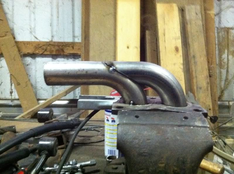 any who, got the other side exhaust done, ran some pipe between them brought them together into a flange that I can build the rest of the exhaust off of.