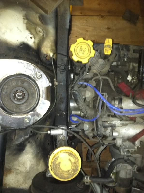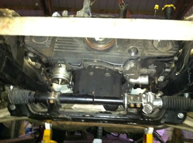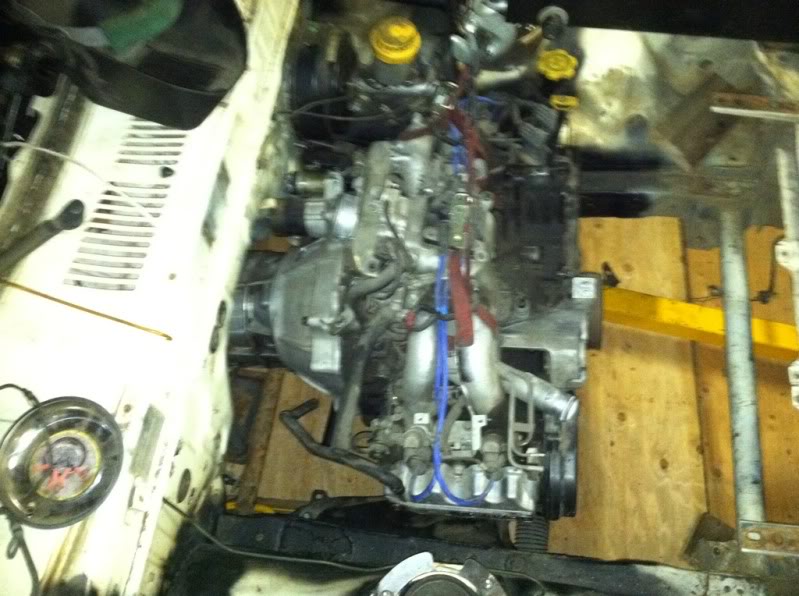 Got some more time out in the garage today. Didn't get tons done but I was able to hang the motor and trans in and start to figure out my mounts.