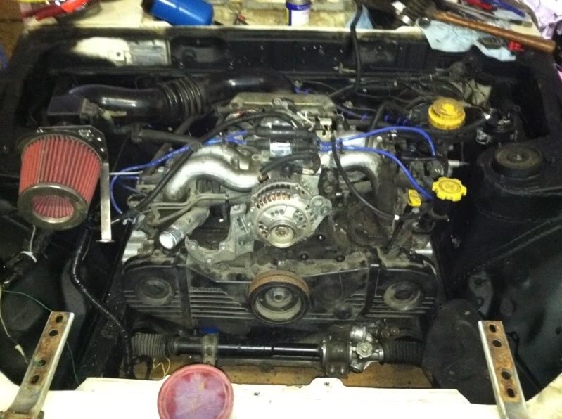 so my now thought is, pretty much use the stock rad hoses to place the impreza rad where it would normally fit in front of the motor and build the mounts to fit.