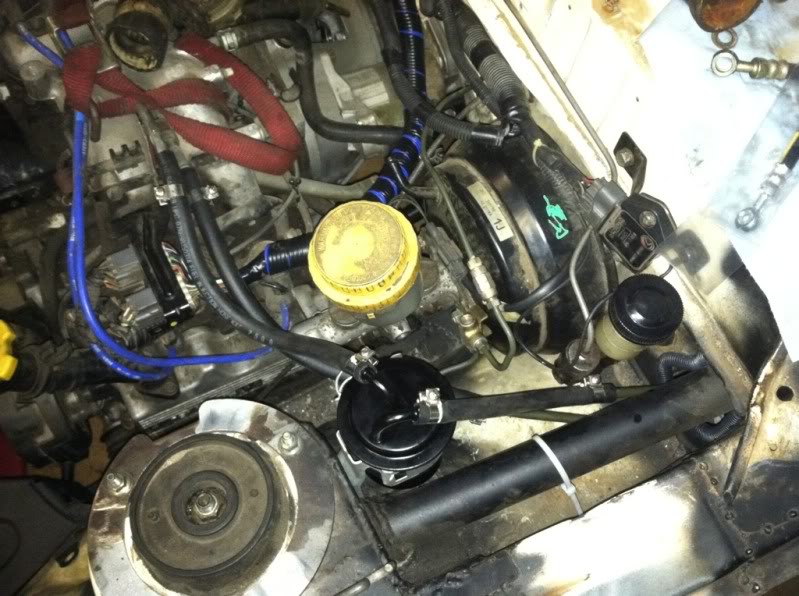 i did figure out my throttle cable today. i'm going to use the stock legacy cable. the rx7 one was just barely to short. I mean so damn close. because that would have been awesome. but no such luck. i did have to bend the pedal around and trim the hole in the fire wall but it will still use the rx7 pedal.
