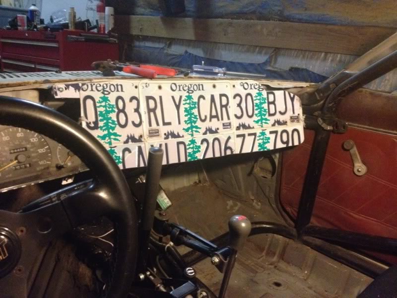 The nice thing about my parents owning a dealer ship is the stock pile of old license plates. So what to do, make a dash out of them, that's what.