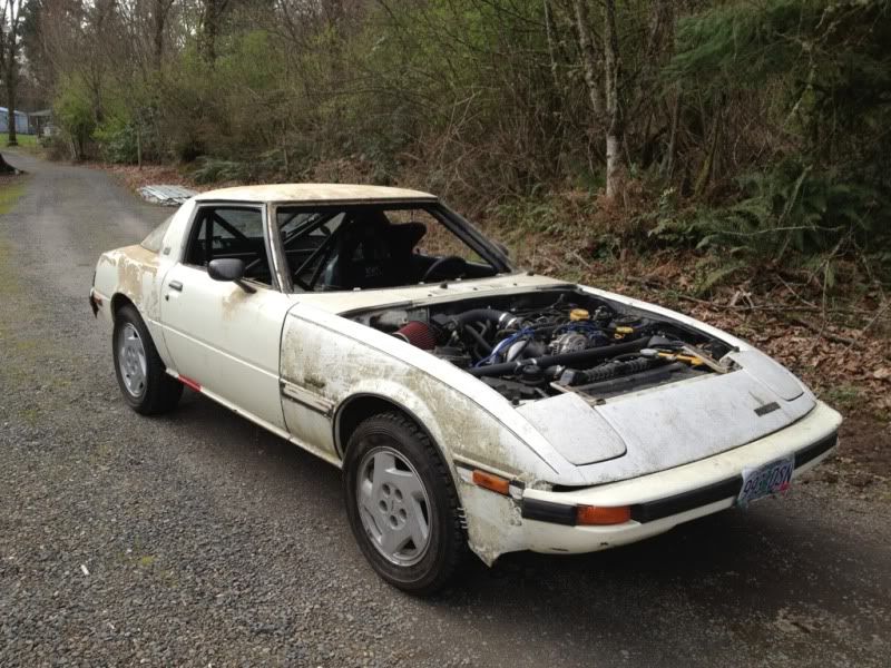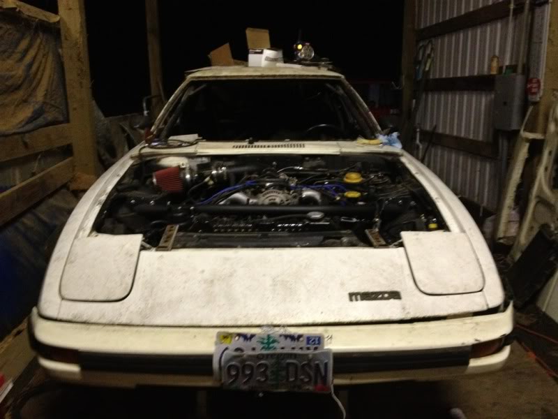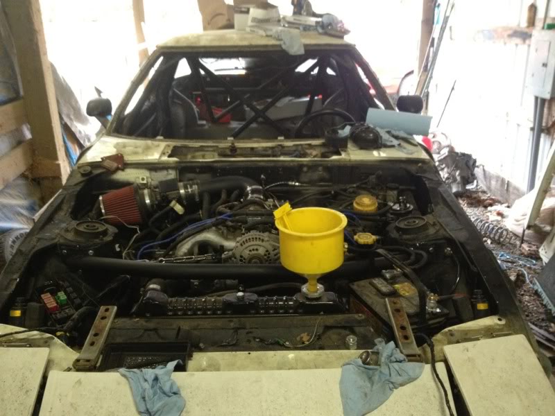 So got the car all back together and filled back up with fluids. I have to say now after many back and forth about what I was going to do about a radiator, I'm glad I stuck with the stock rx7 one, mainly for the shear volume of coolant that is held. It took a full 2 gallons when it was all said and done. I don't think the Subaru ones even took 1.5 gallons.
