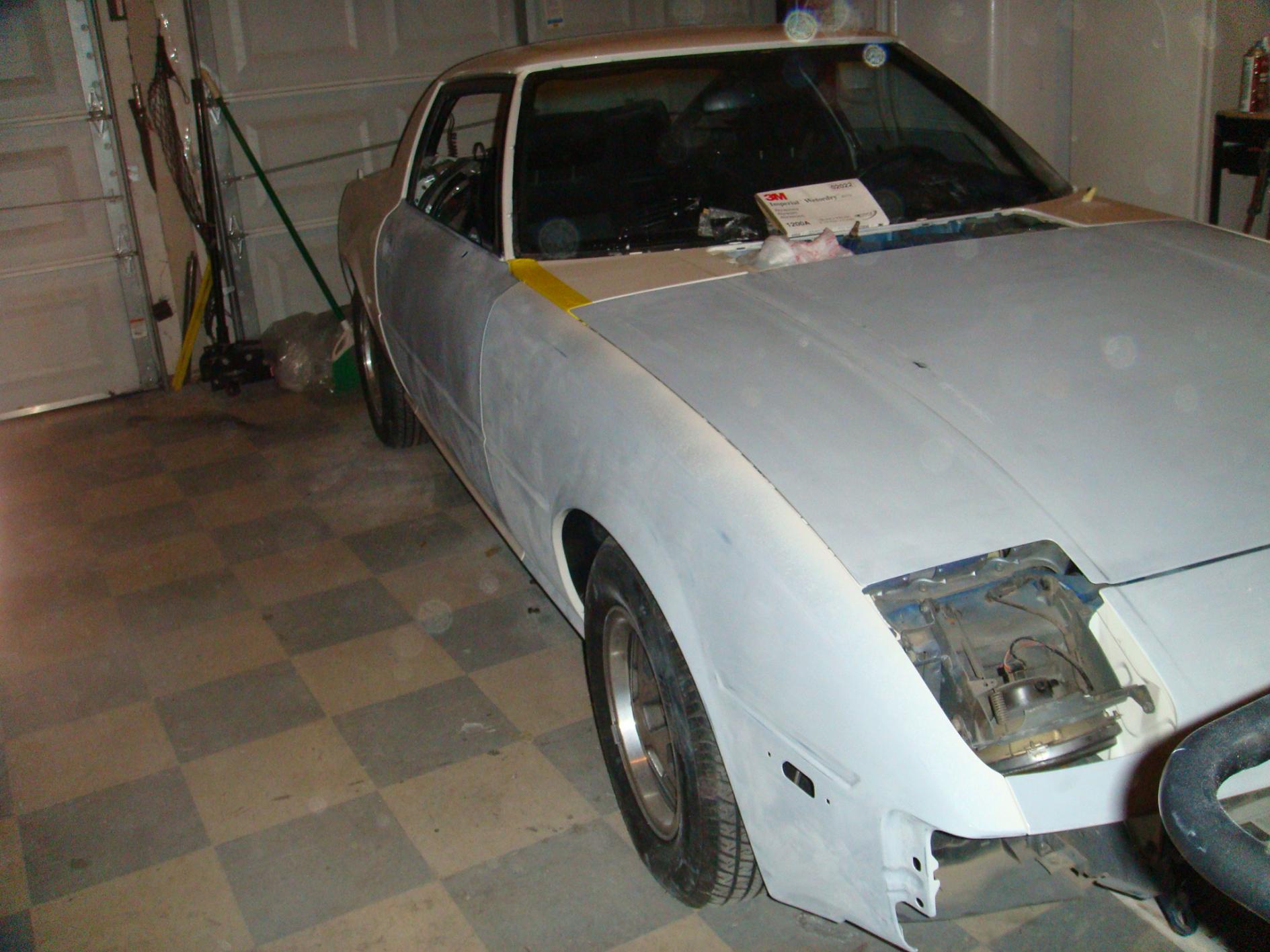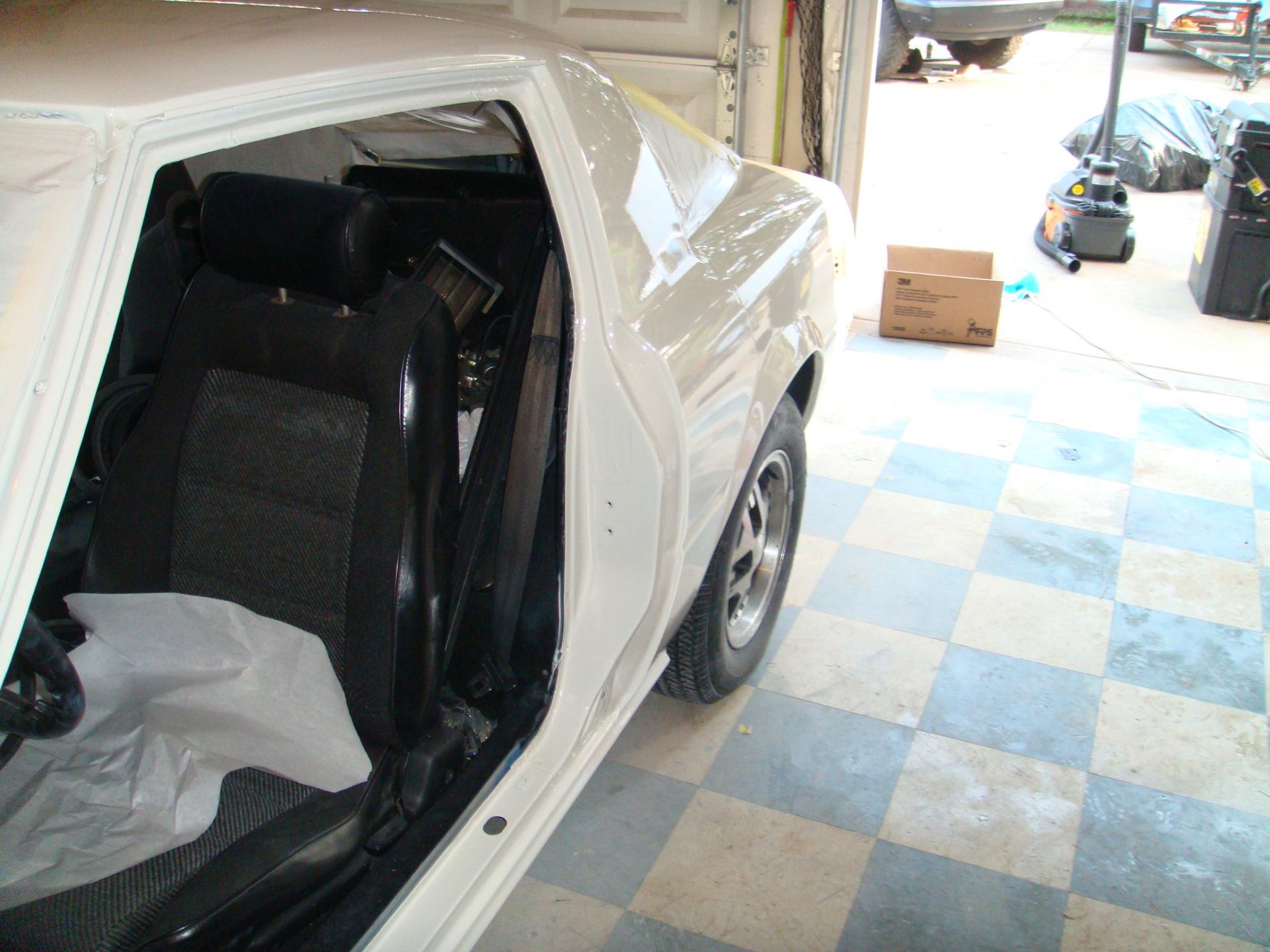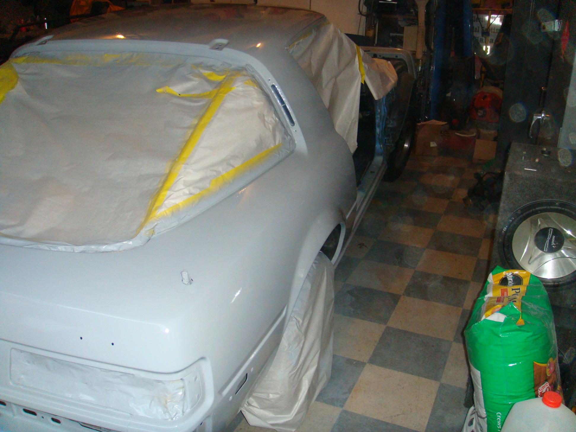 So over the course of the last two days (4ish hours really) we have mounted almost everything, and it looks great imo. oh yea we also painted the bottom of the hood and the doors jams. if all goes well we will paint the rest of the car tomorow (excluding the light covers, mirrors, and bumpers--- that should be Thursday if not Friday).