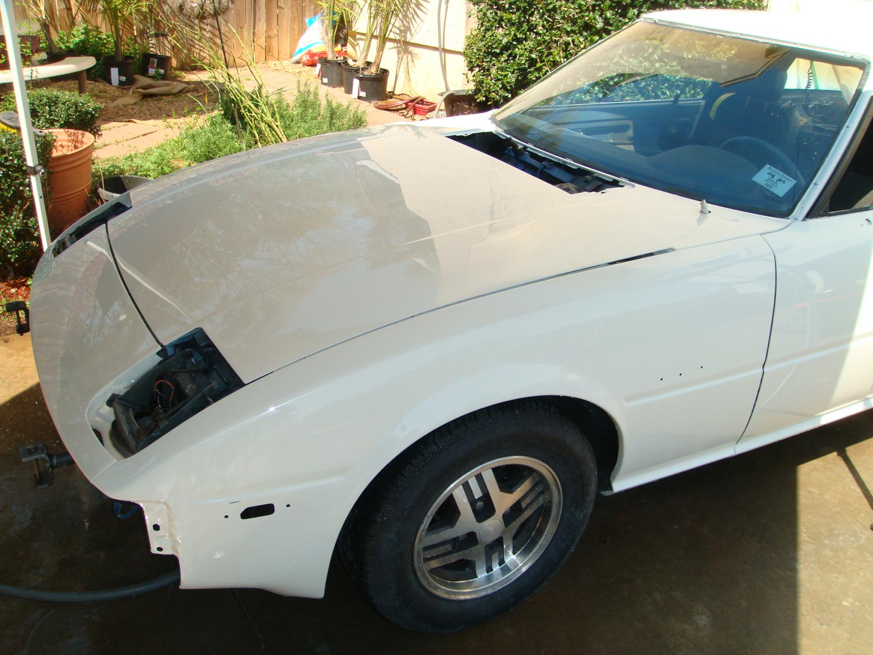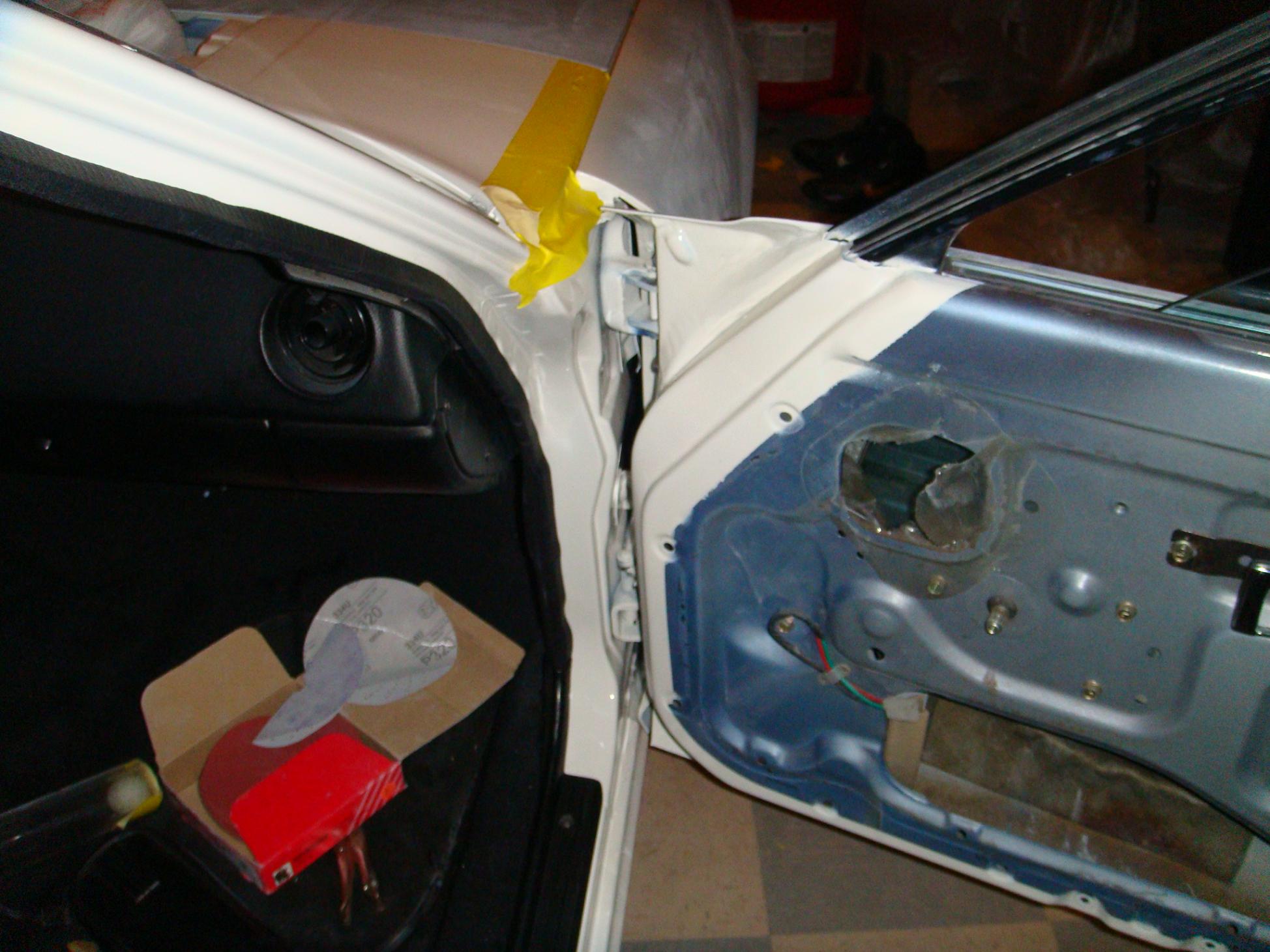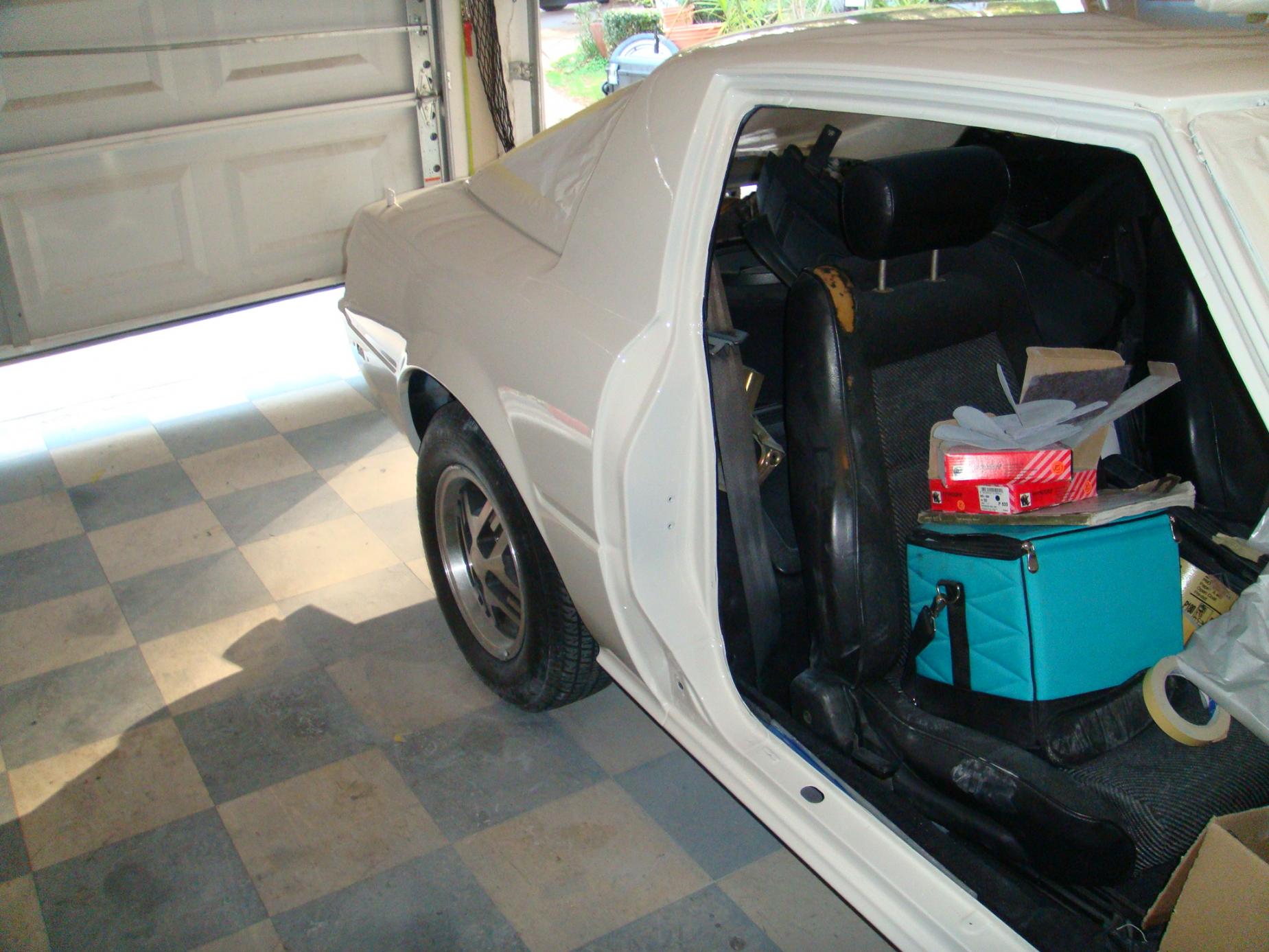 So over the course of the last two days (4ish hours really) we have mounted almost everything, and it looks great imo. oh yea we also painted the bottom of the hood and the doors jams. if all goes well we will paint the rest of the car tomorow (excluding the light covers, mirrors, and bumpers--- that should be Thursday if not Friday).