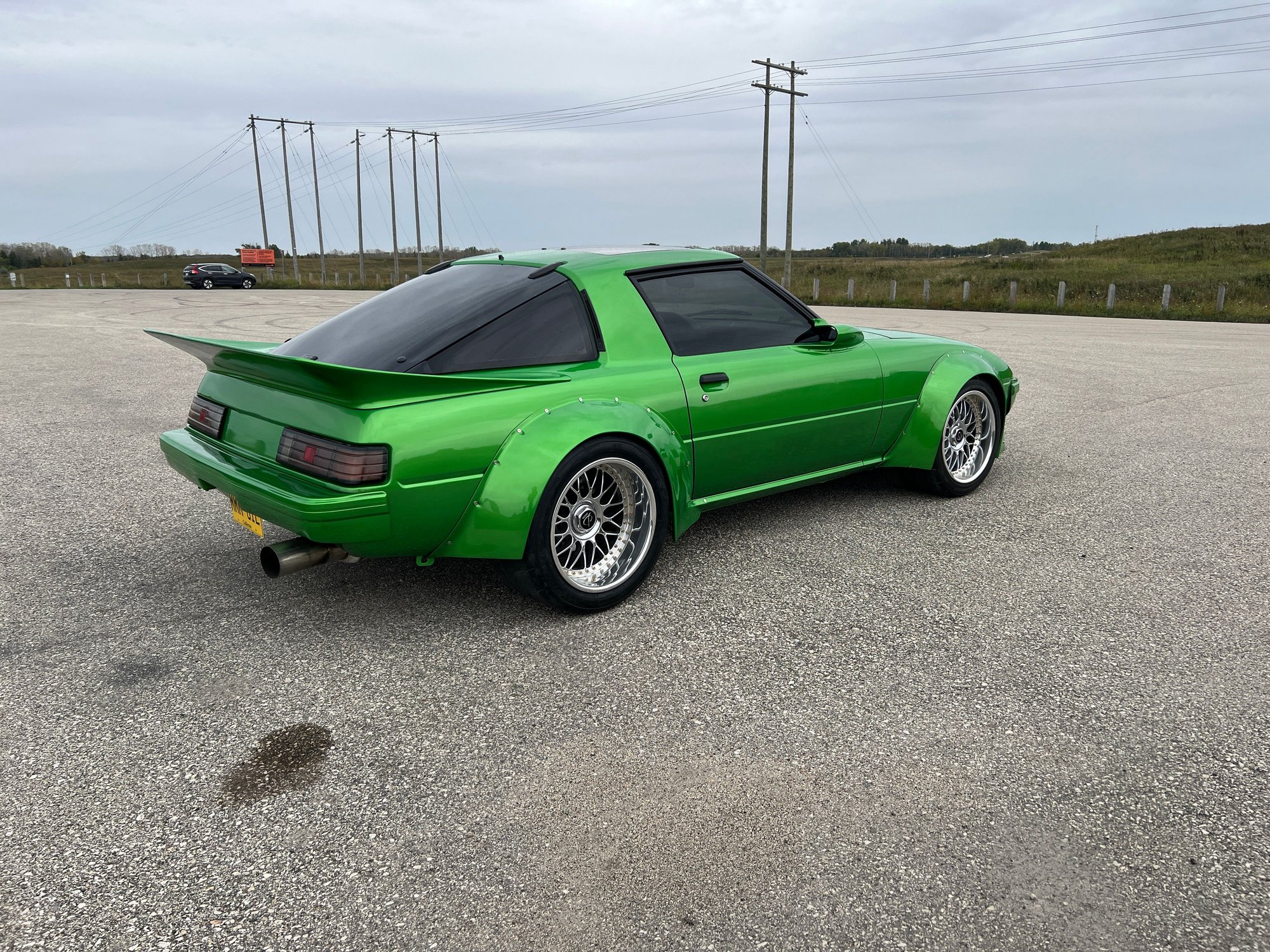 Car has the ol' RE-SPEED big brake kit using FC hubs/rotors w/ FD calipers up front. Moser axles w/ TII rotors and calipers in the back.