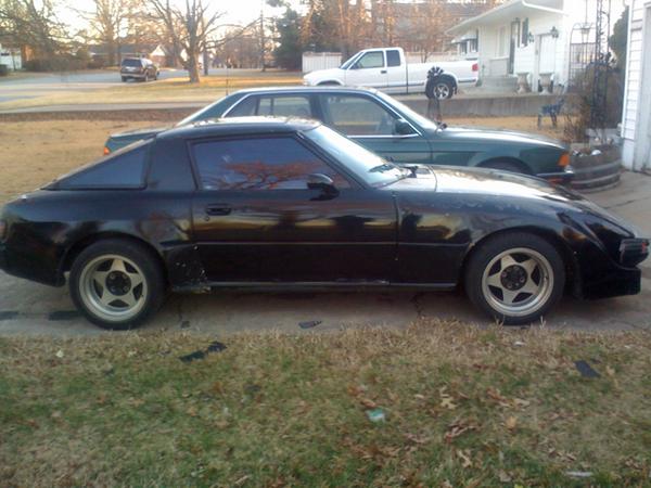 I just traded for two 83 FB RX-7s one I believe is a GS and the other a GSL. This obsession of owning an RX-7 came when my good friend CJ started an autocross event in our small town of Carthage, MO. CJ owned what is now mine a light blue 83 GS. I instantly fell in love with that car. That was over eight years ago. My younger brother bought the car from CJ six years ago. My brother owned the car until 2 years ago. Since that time the car had traded hands some ten times and traveled as far as Wichita, KS. I had just sold my 91 Honda Civic Hatch Si and was in the market for another vehicle. Upon visiting Craigslist I found what looked like the long lost RX-7. The ad stated that the now black GS and an 83 GSL were up for sale. The GS was in need of repair and the GSL while complete outside minus the driver window and the pass rear quarter window didn’t have the engine anymore. I discovered while talking with the owner that it was CJ's brother Brad. We immediately stuck and deal and I trailered the two cars home.